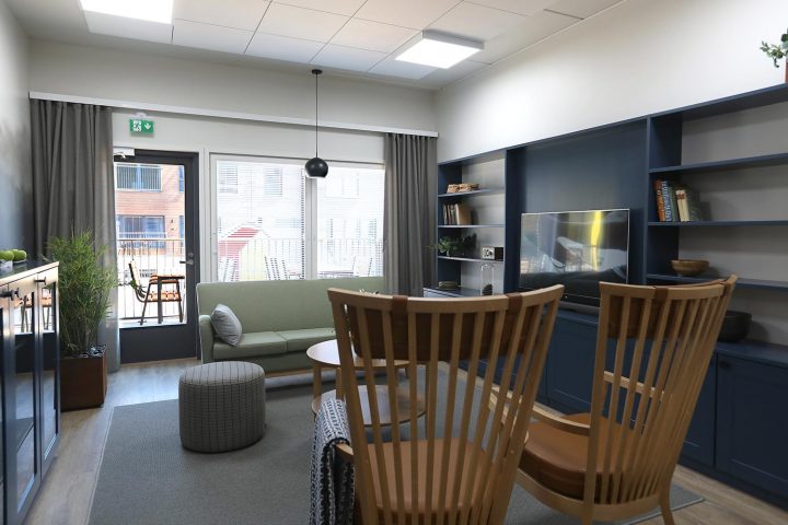 Palvelukodin suuret ikkunat antavat valoa arkeen