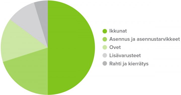 Ikkunaremontti on aina verrattain suuri investointi, jonka positiiviset vaikutukset kuitenkin näkyvät ja tuntuvat kodissa vuosikymmeniä. Ikkunoiden vaihtamisen kustannuksia onkin hyvä hahmotella etukäteen, sillä käytännössä ikkunaremontin hinta ei muodostu vain uusista ikkunoista, joiden osuus kokonaissummasta on yleensä noin 50 %.