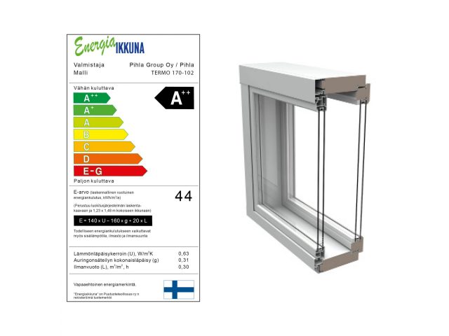 Pihlan ikkunat ovat vähintään A -energialuokiteltuja. Ikkunat luokitellaan kodinkoneiden energiatodistuksesta tutulla asteikolla A++:sta G:hen.