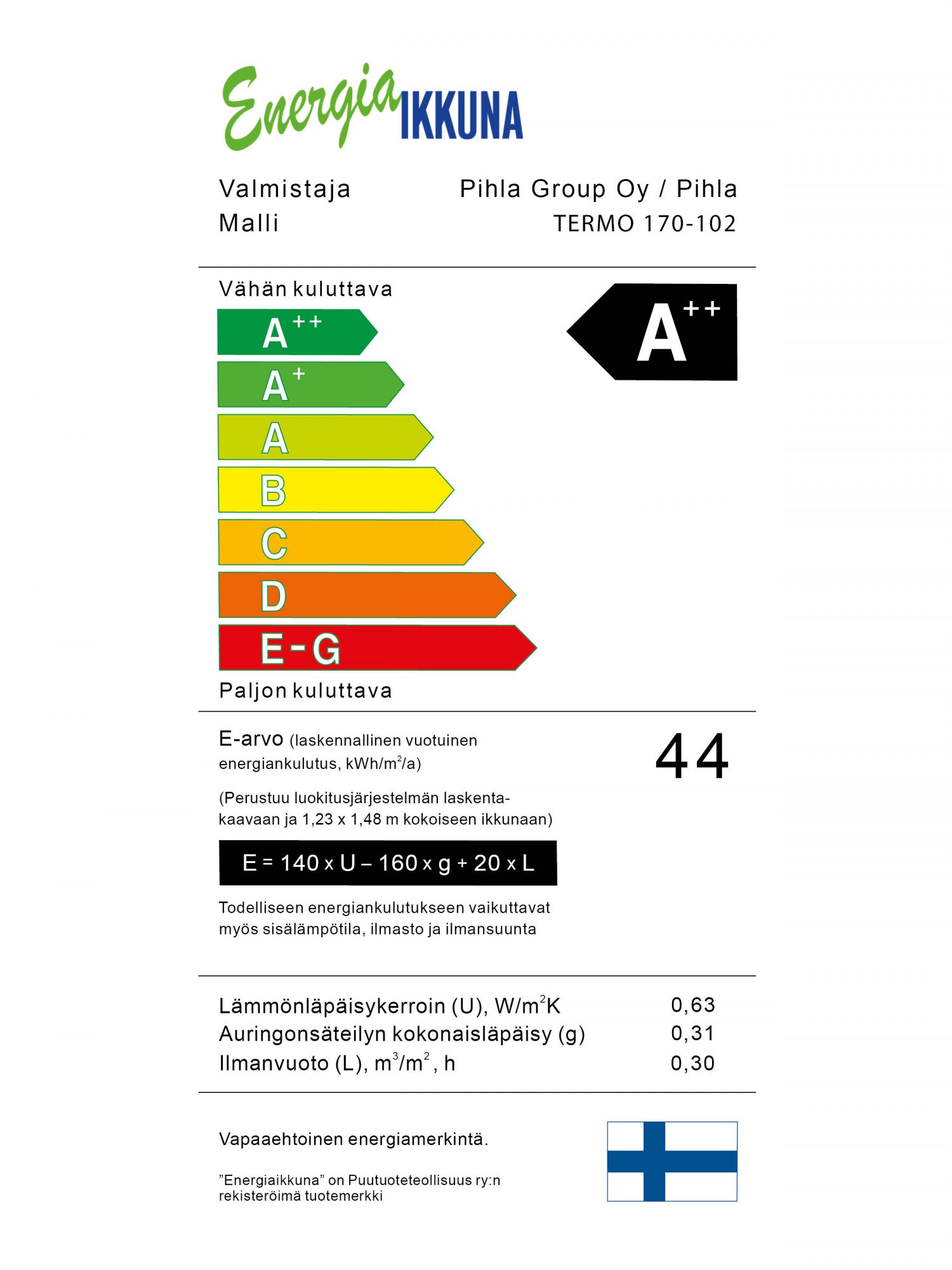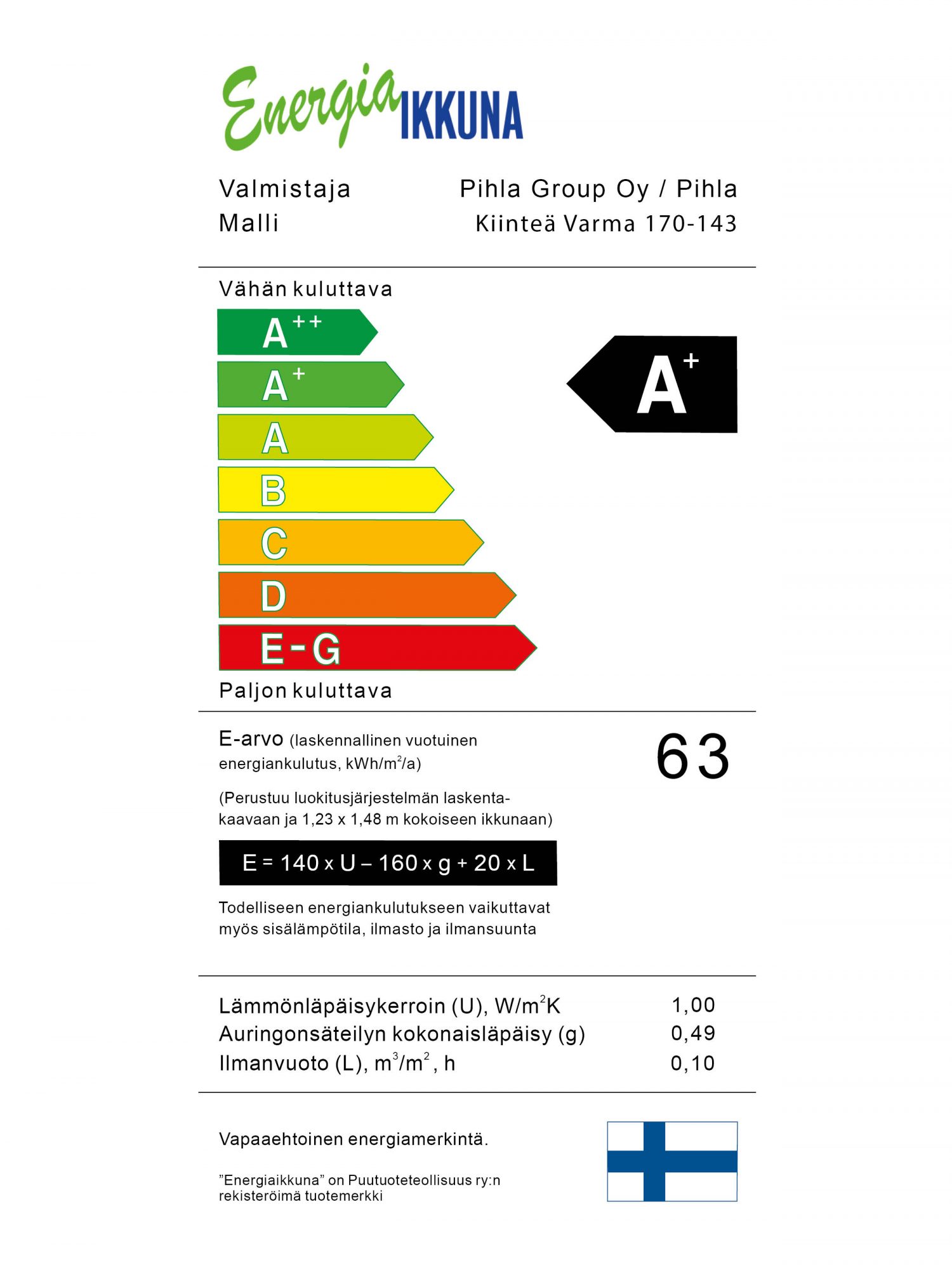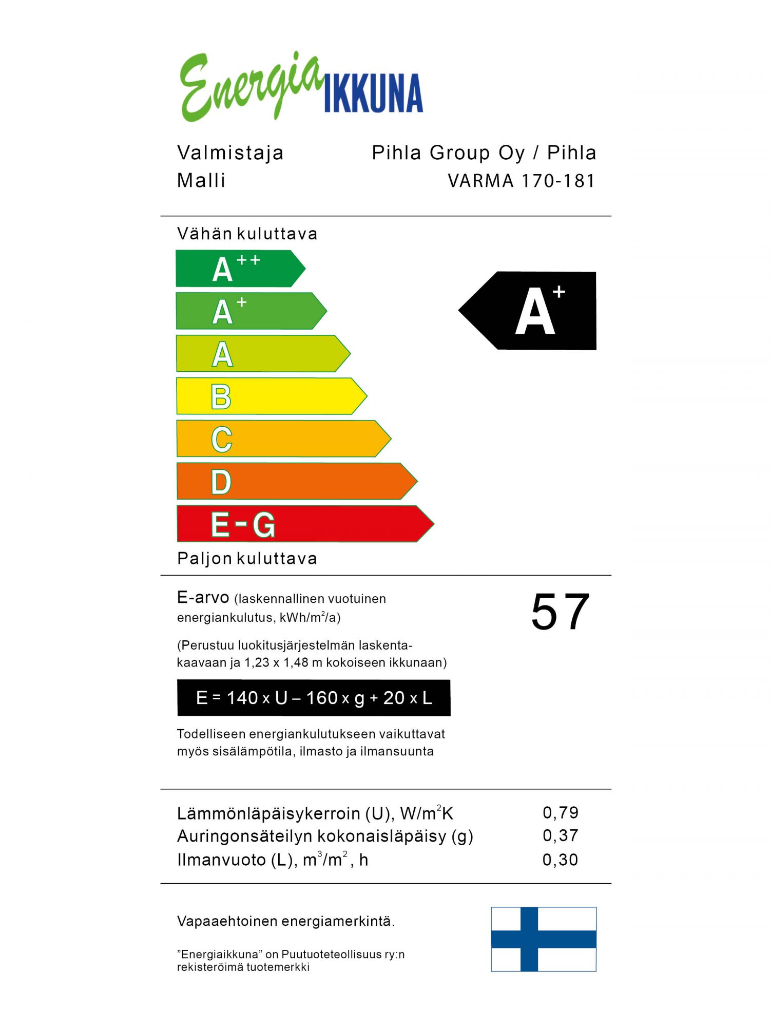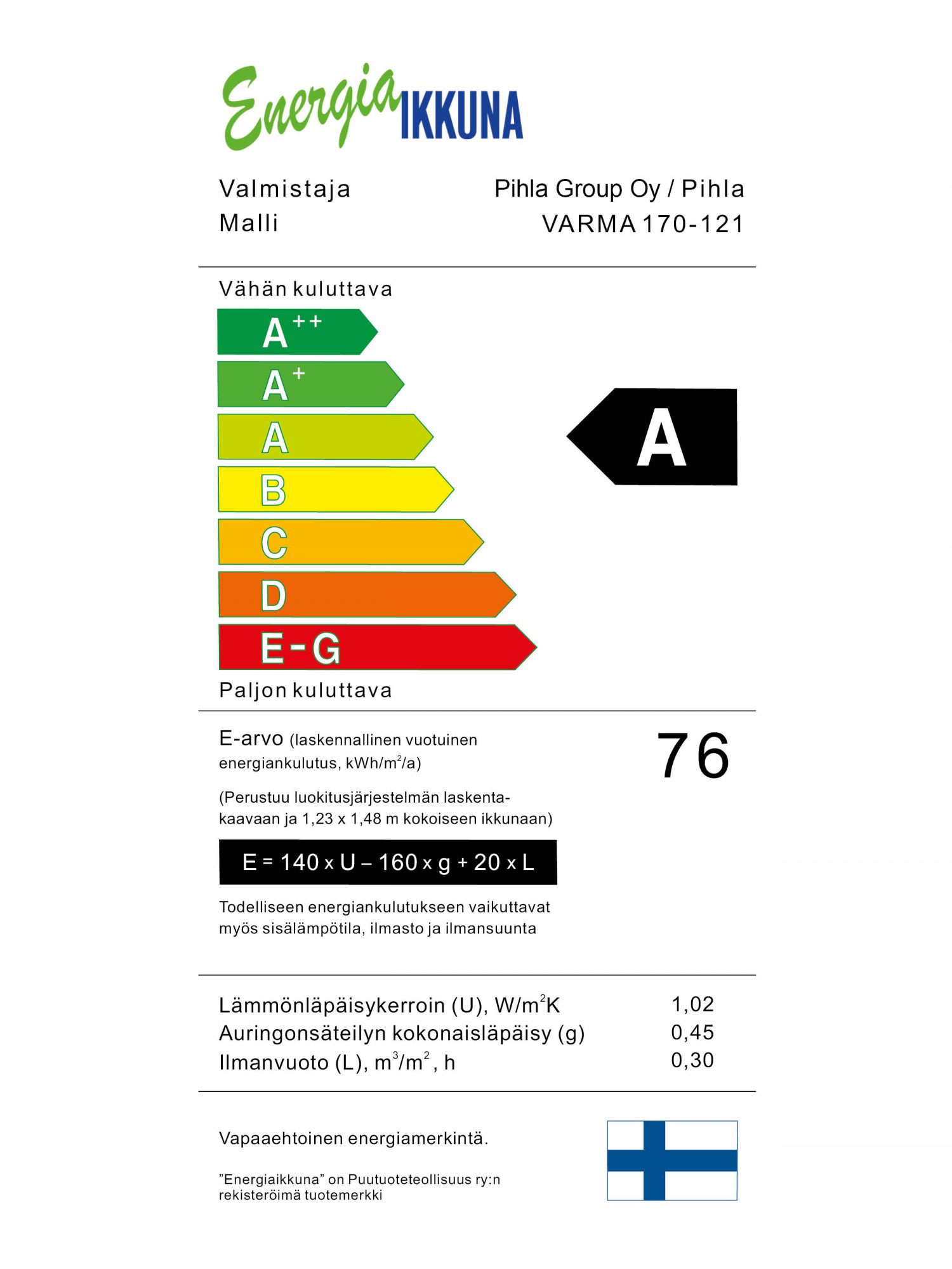 Katso Pihla-ikkunoiden tarkemmat energialuokitukset oheisilta korteilta.