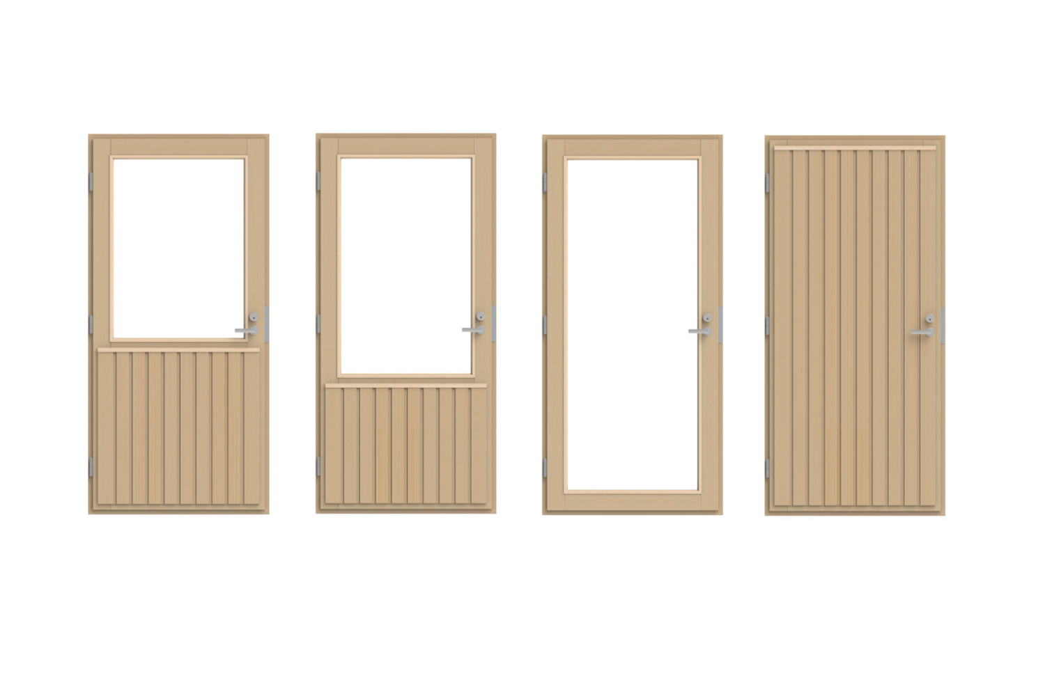 Pihlan Mökkiovet ovat lasiaukon koon lisäksi monipuolisesti räätälöitävissä värityksen, painikkeiden kuin vaikkapa lukituksen osalta. Tutustu tarkemmin saatavilla oleviin vaihtoehtoihin tuotesivulla.