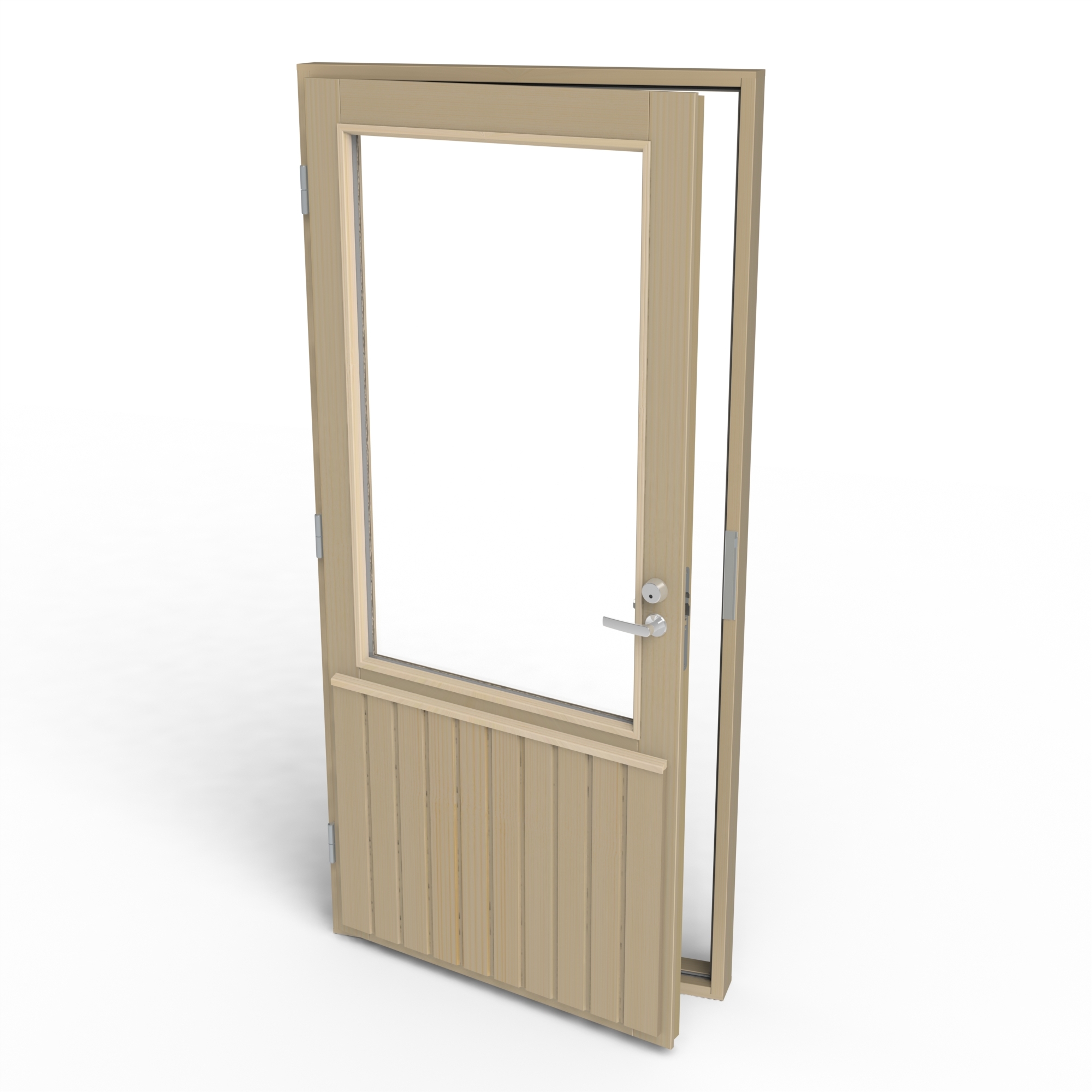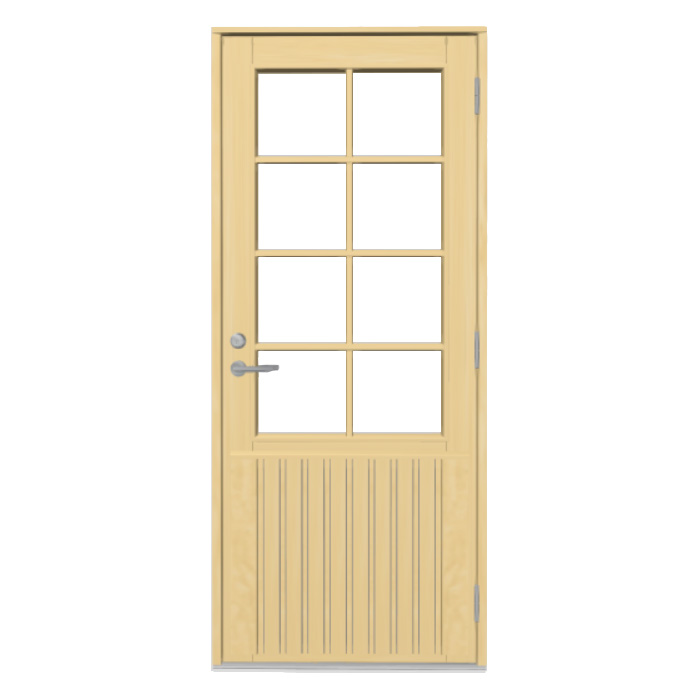Kevyt Puuovessa on luonnollisen kaunis puupinta, molemmin puolin 95 mm leveällä pystypaneloinnilla. Kevyt Puuoven voi valita lasiaukollisena, koot M12 ja M14, kokolasisena tai umpiovena. Puumateriaalin matala hiilijalanjälki tekee siitä ympäristöystävällisen valinnan. Kevyt Puuovi sopii niin vanhempiin rakennuksiin kuin uudisrakentamiseenkin.