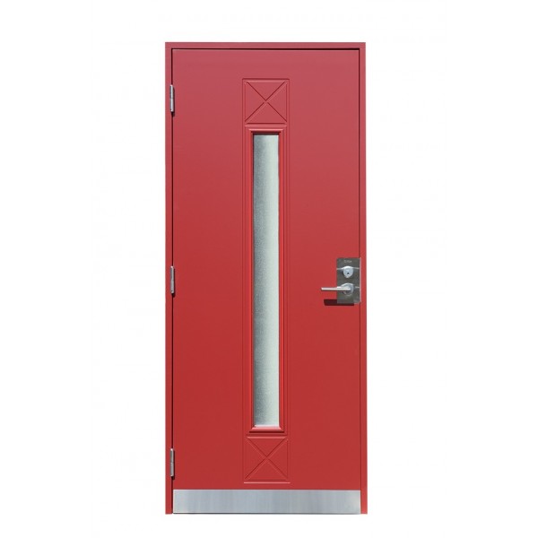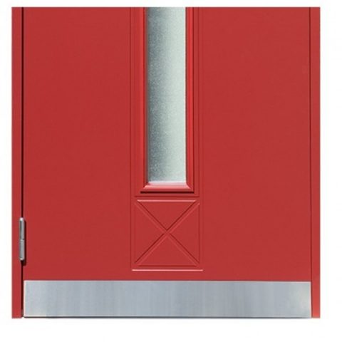 Ulko-oven alaosaan tarkoitettu potkupelti. Materiaali 1 mm paksuista ruostumatonta teräslevyä. Voit valita leveyden väliltä 700 – 1000 mm ja korkeuden väliltä 90 – 210 mm. Kiinnitetään liimaamalla ja/tai kaksipuolisella teipillä. Varmista kiinnitysaineen sopivuus oveen. (Esimerkki Pihlan HDF-levypinnoille sopivasta liimamassasta: Sikaflex 521 UV)
