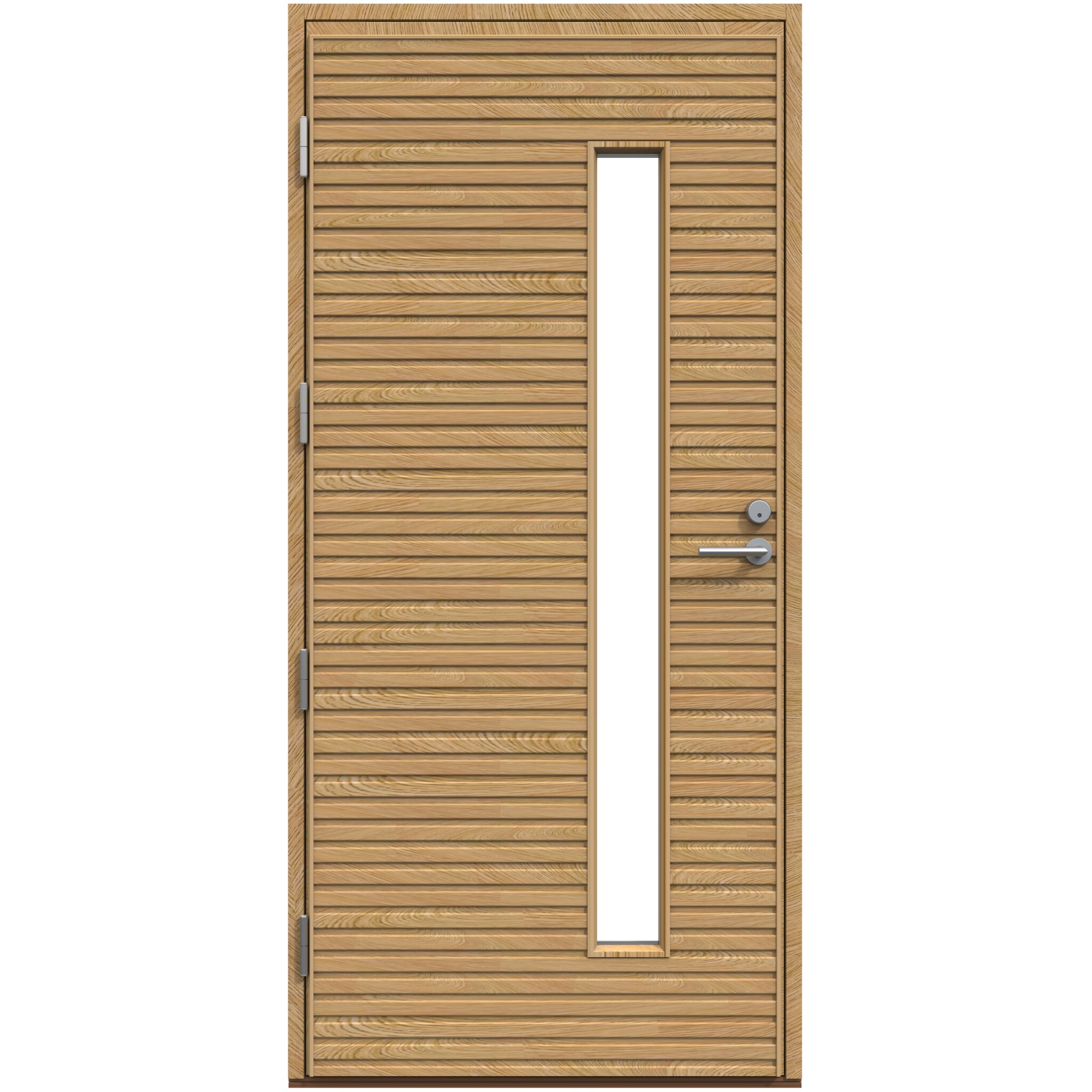Suunnittele omasiVaakasuoraan kulkevalla kapealla paneloinnilla varustettu puinen ulko-ovi, jossa on korkea ja kapea lasiaukko. Puuovi ECO-malliston ovet ovat valittavissa erilaisin kuultosävyin käsiteltyinä, jolloin elävä puupinta jää ilmeikkäästi näkyviin. Pihla Puuovi ECO-malliston ovet valmistetaan valikoidusta puuaineksesta, käsityönä perinteisillä puusepän menetelmillä Suomessa.