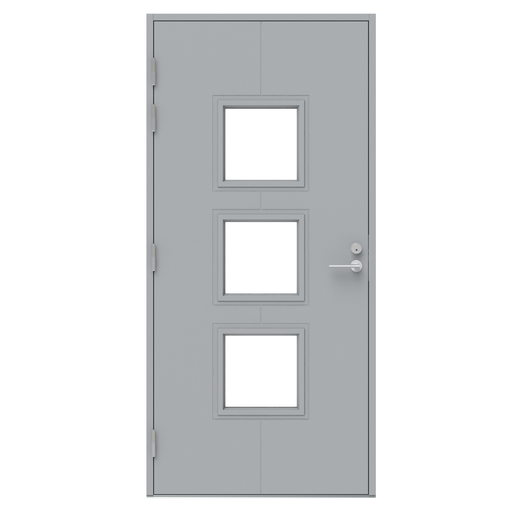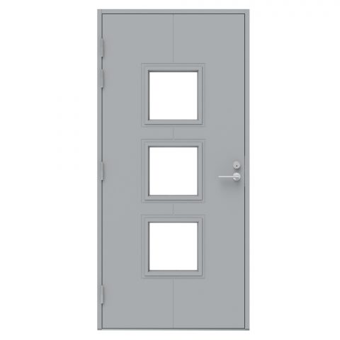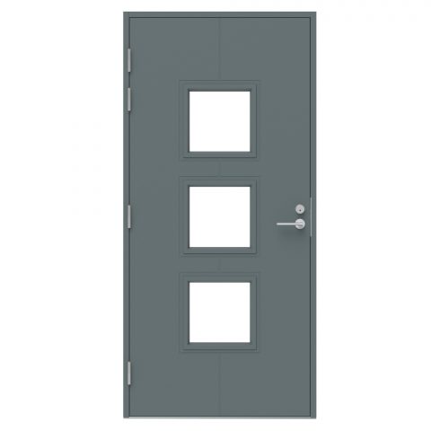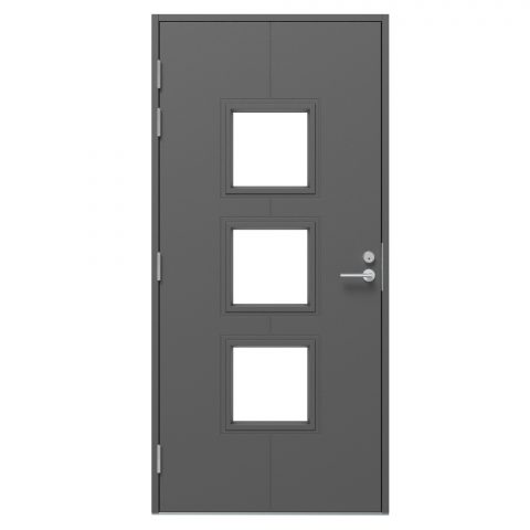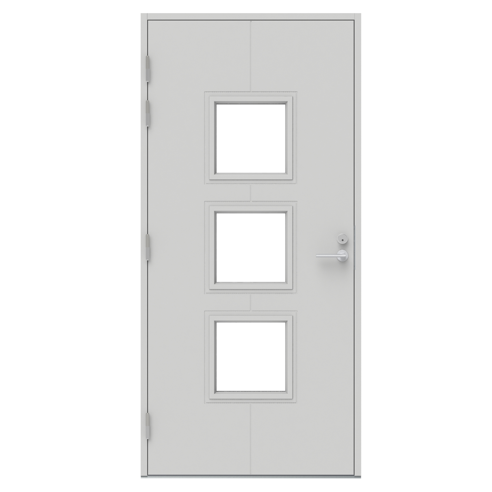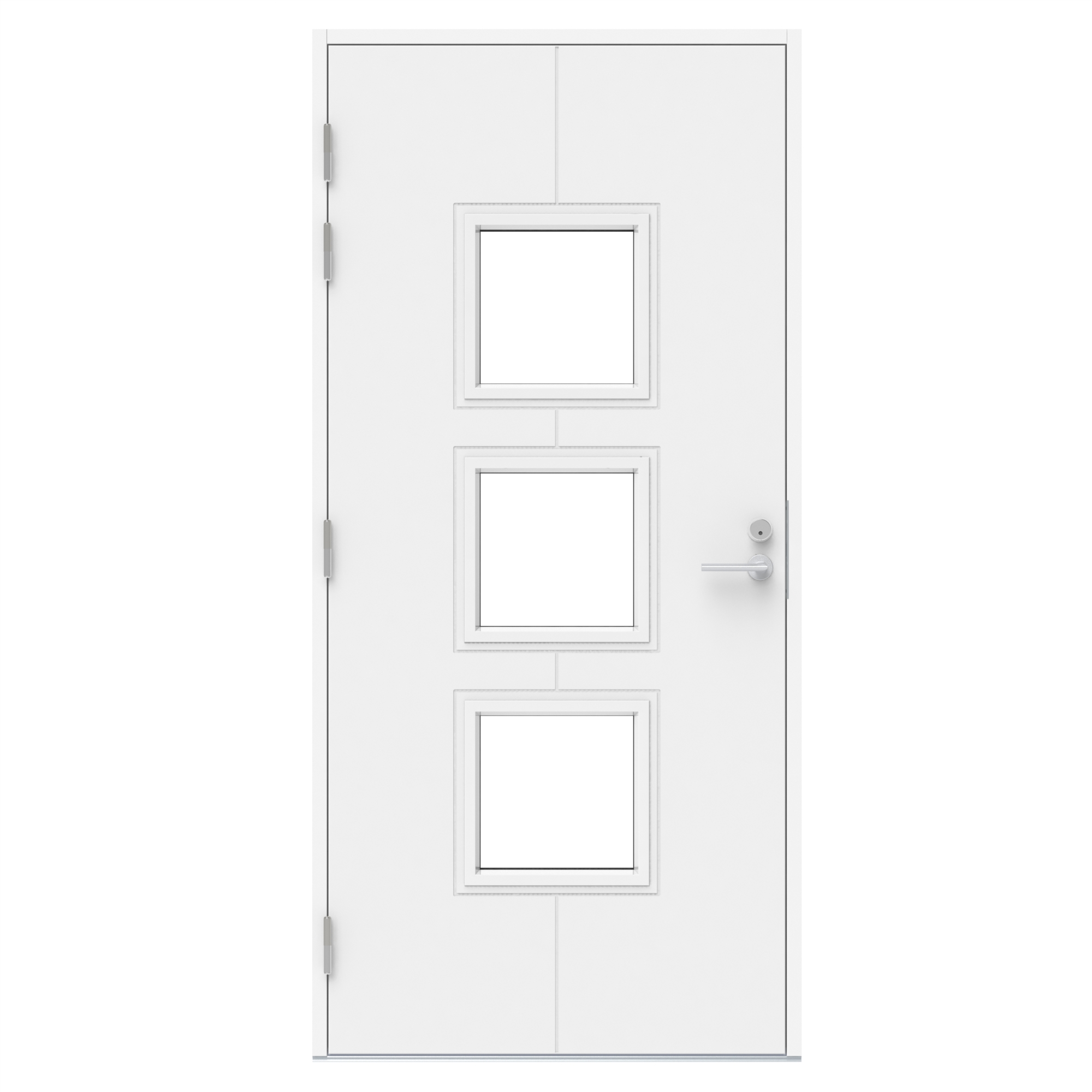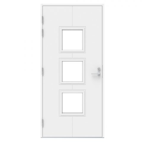 Suunnittele omasiKolmella suurella ruutuikkunalla varustettu ovi. Koristelaseilla voit muokata oven olemusta ja säädellä sitä millaisen näkösuojan ovi tarjoaa. Ovi on saatavilla useissa eri väreissä. Oven rakenne on valittavissa Varma-rakenteella (U-arvo 0,91), energiatehokkaalla Termo-rakenteella (U-arvo 0,87) ja kevyemmällä Vieno-rakenteella (U-arvo 1,00).