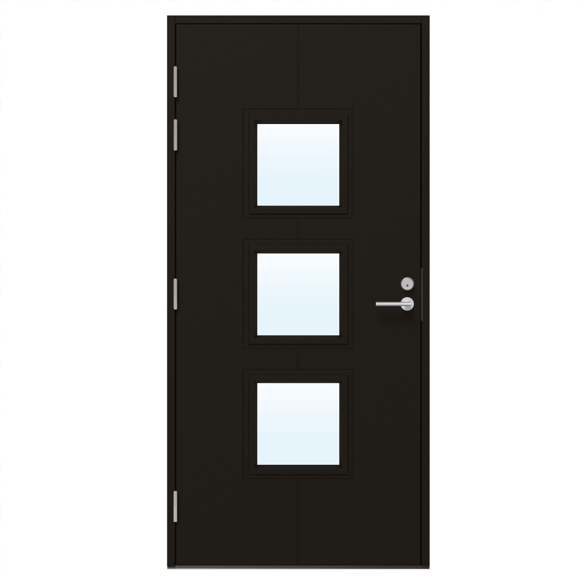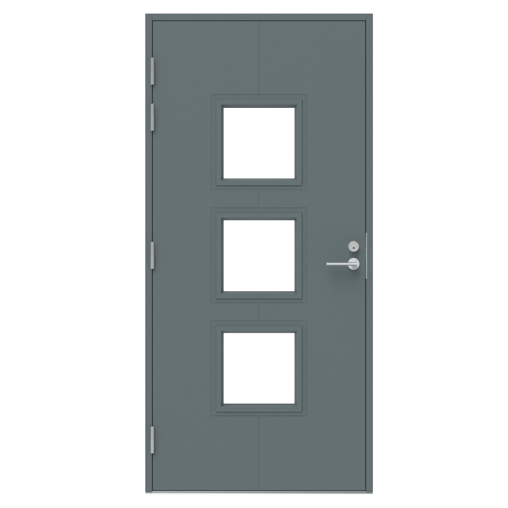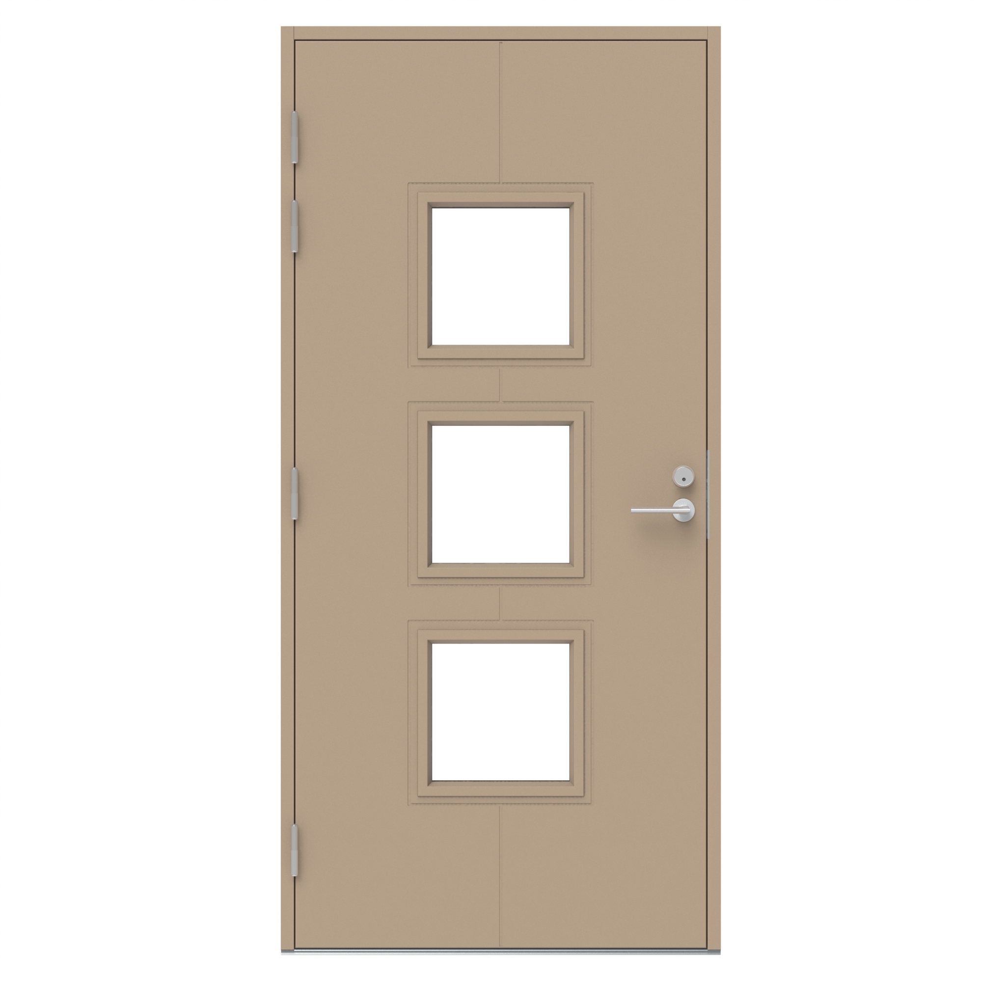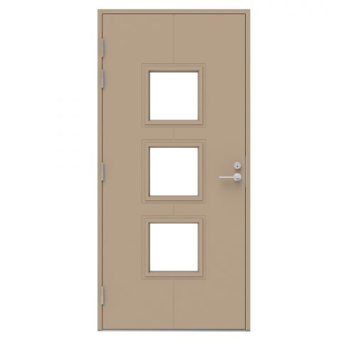 Suunnittele omasiKolmella suurella ruutuikkunalla varustettu ovi. Koristelaseilla voit muokata oven olemusta ja säädellä sitä millaisen näkösuojan ovi tarjoaa. Ovi on saatavilla useissa eri väreissä. Oven rakenne on valittavissa Varma-rakenteella (U-arvo 0,91), energiatehokkaalla Termo-rakenteella (U-arvo 0,87) ja kevyemmällä Vieno-rakenteella (U-arvo 1,00).