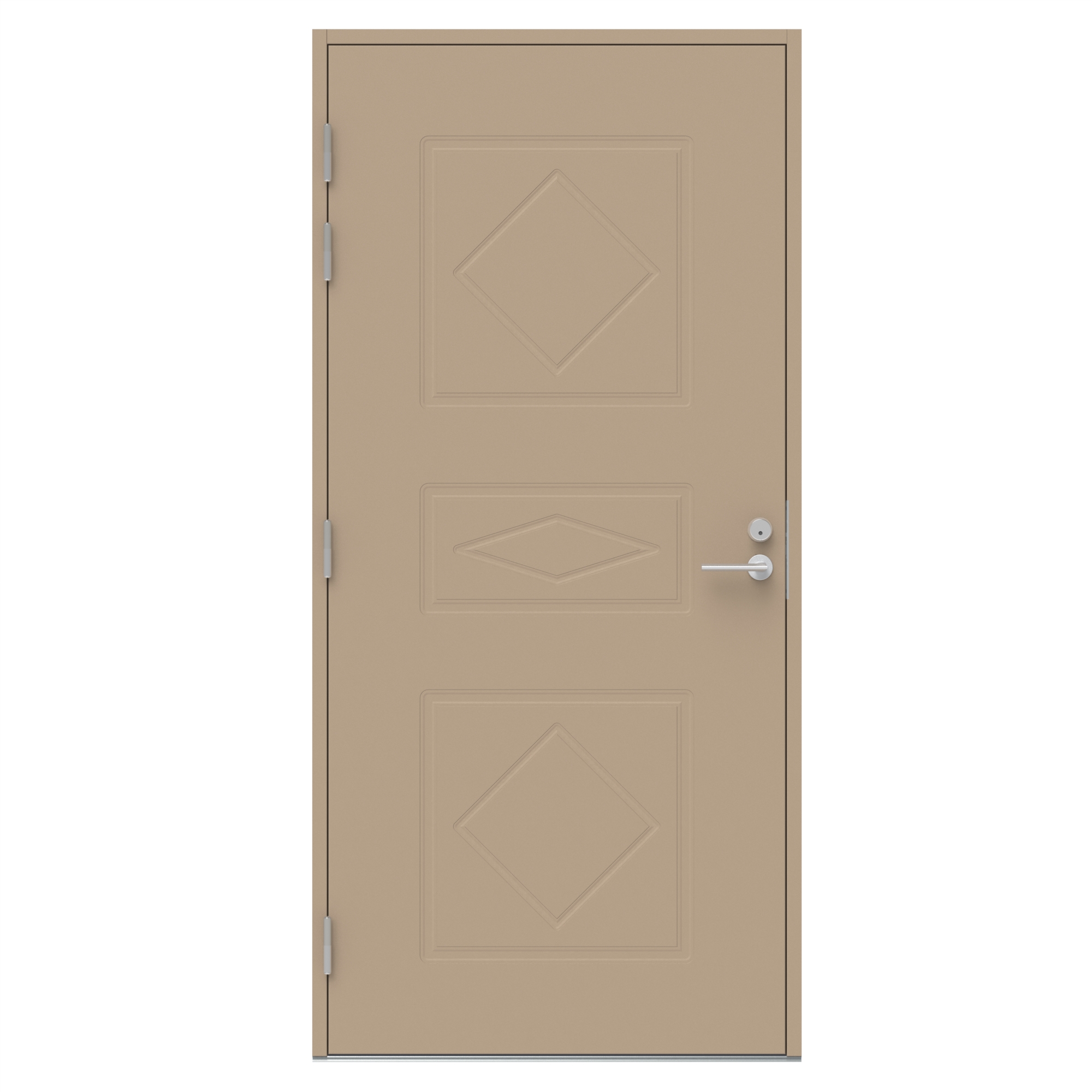 Suunnittele omasiSalmiakkikuvioilla ja neliökuvioilla kuviouritettu, umpinainen ulko-ovi. Ovi on saatavilla useissa eri väreissä. Lisävarusteilla voit lisätä oven käyttömukavuutta ja vaikuttaa ulkonäköön. Oven rakenne on valittavissa Varma-rakenteella (U-arvo 0,73), energiatehokkaalla Termo-rakenteella (U-arvo 0,69), kevyemmällä Vieno-rakenteella (U-arvo 0,85), sekä yhdistelmäovirakenteella.