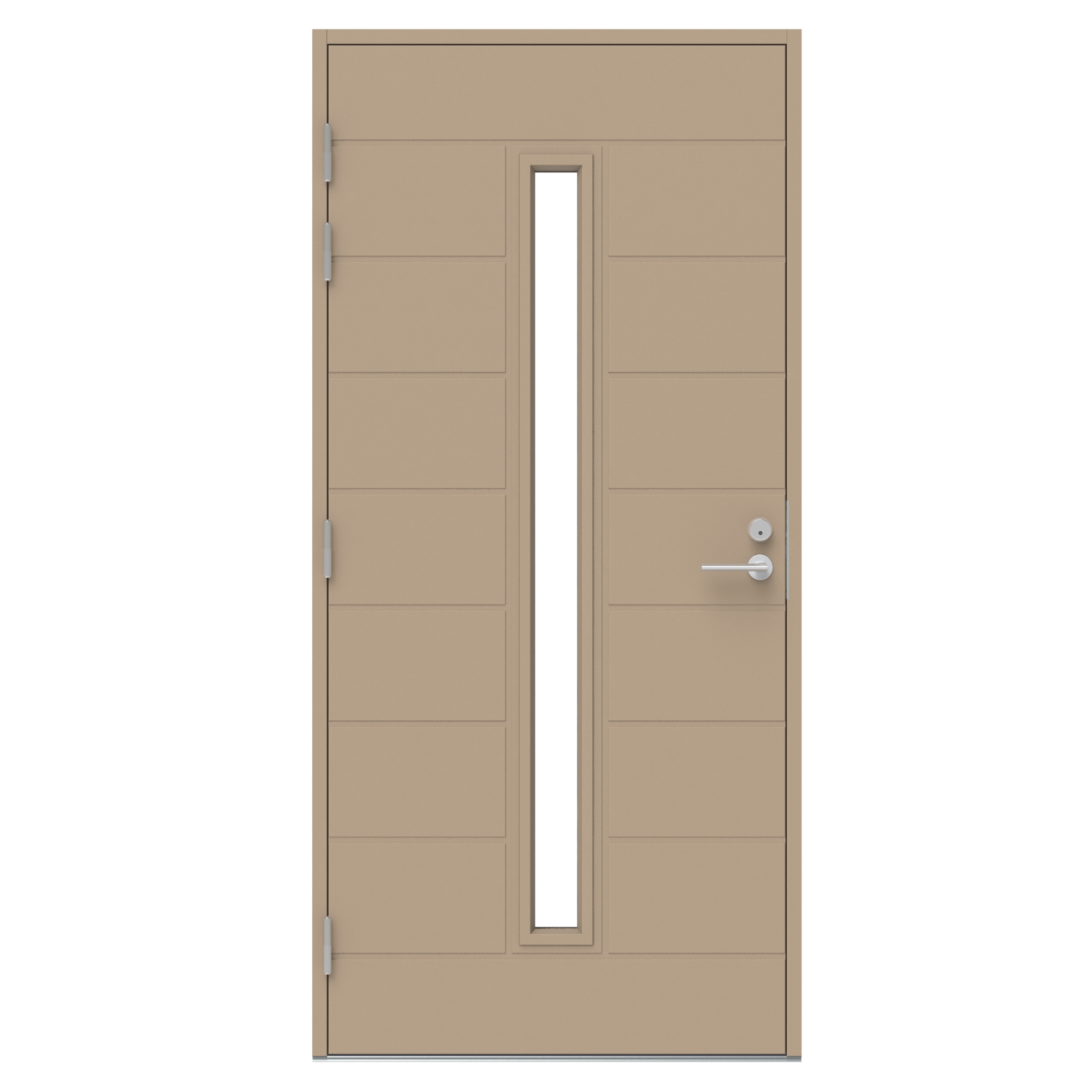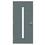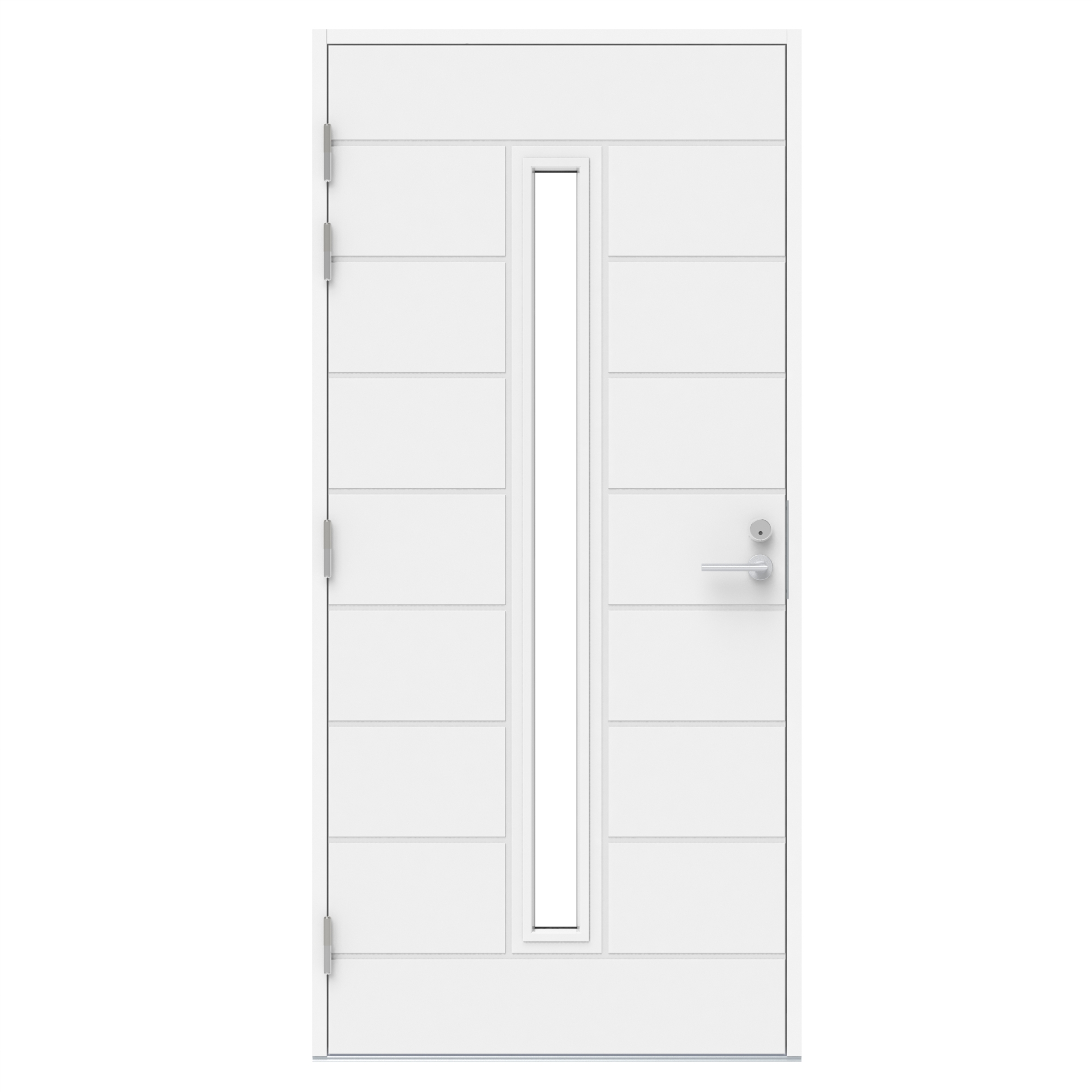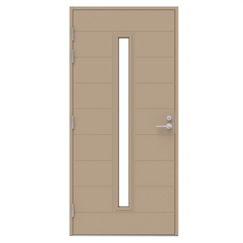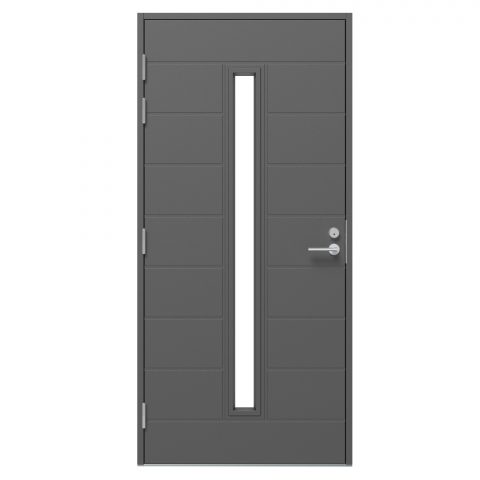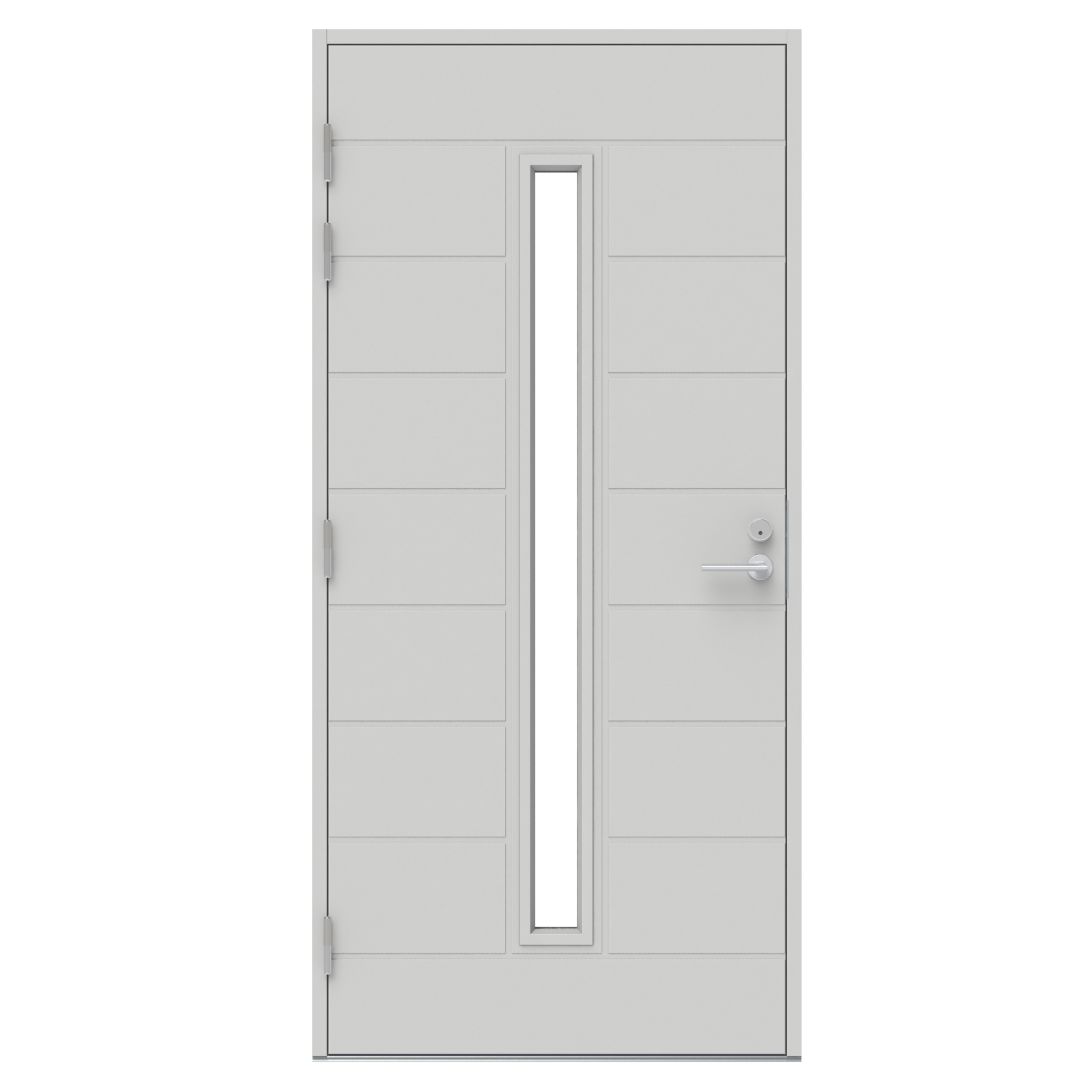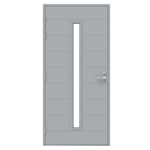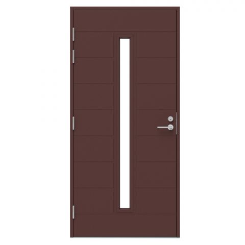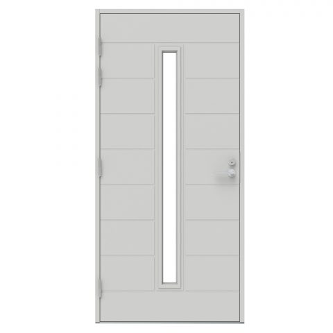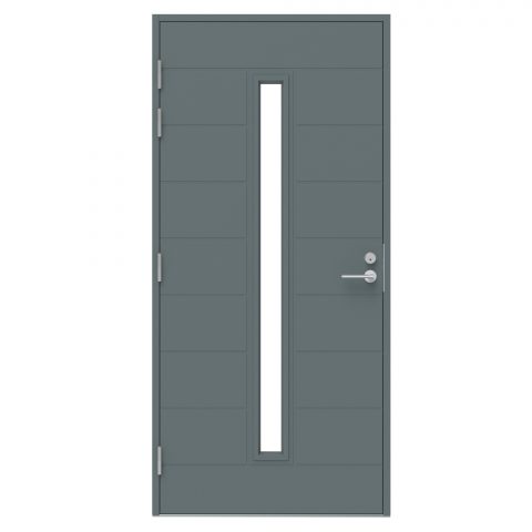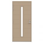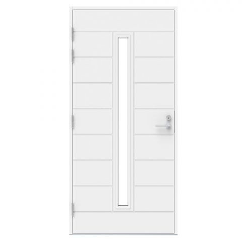 Vaakatasoon kulkevilla kuviourilla varustettu, selkeälinjainen ulko-ovi, jonka keskellä on korkea ja kapea lasiaukko. Koristelaseilla voit muokata oven olemusta ja säädellä sitä millaisen näkösuojan ovi tarjoaa. Ovi on saatavilla useissa eri väreissä ja oven rakenne on valittavissa Varma-rakenteella (U-arvo 0,83), energiatehokkaalla Termo-rakenteella (U-arvo 0,80), kevyemmällä Vieno-rakenteella (U-arvo 0,97), sekä yhdistelmäovirakenteella.