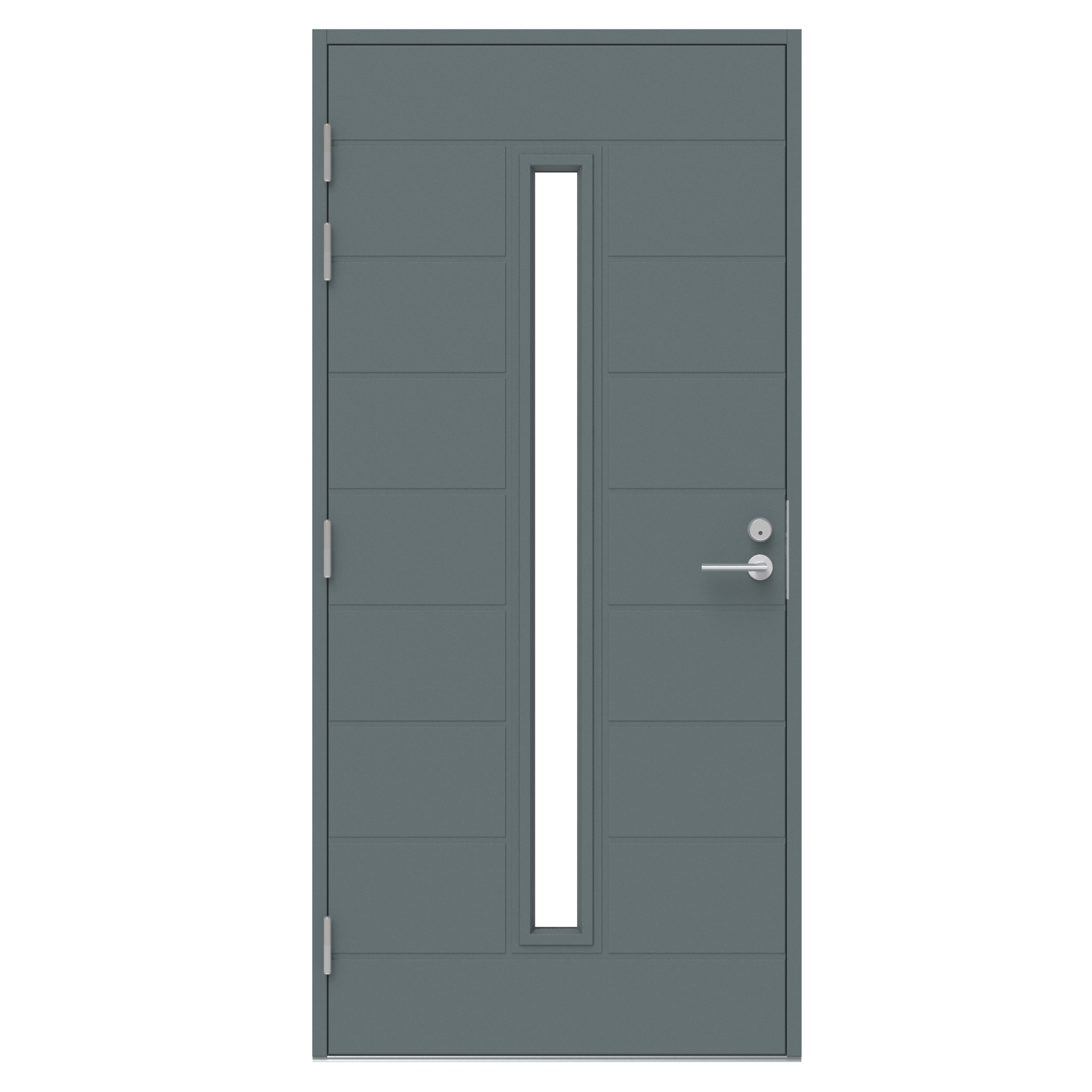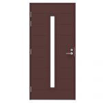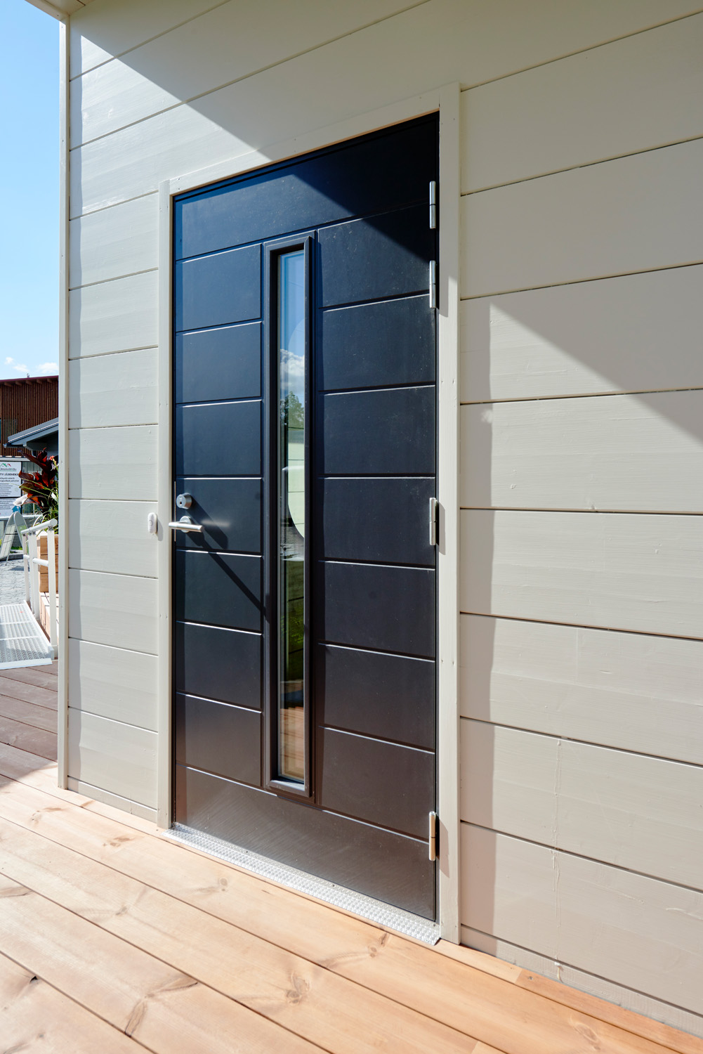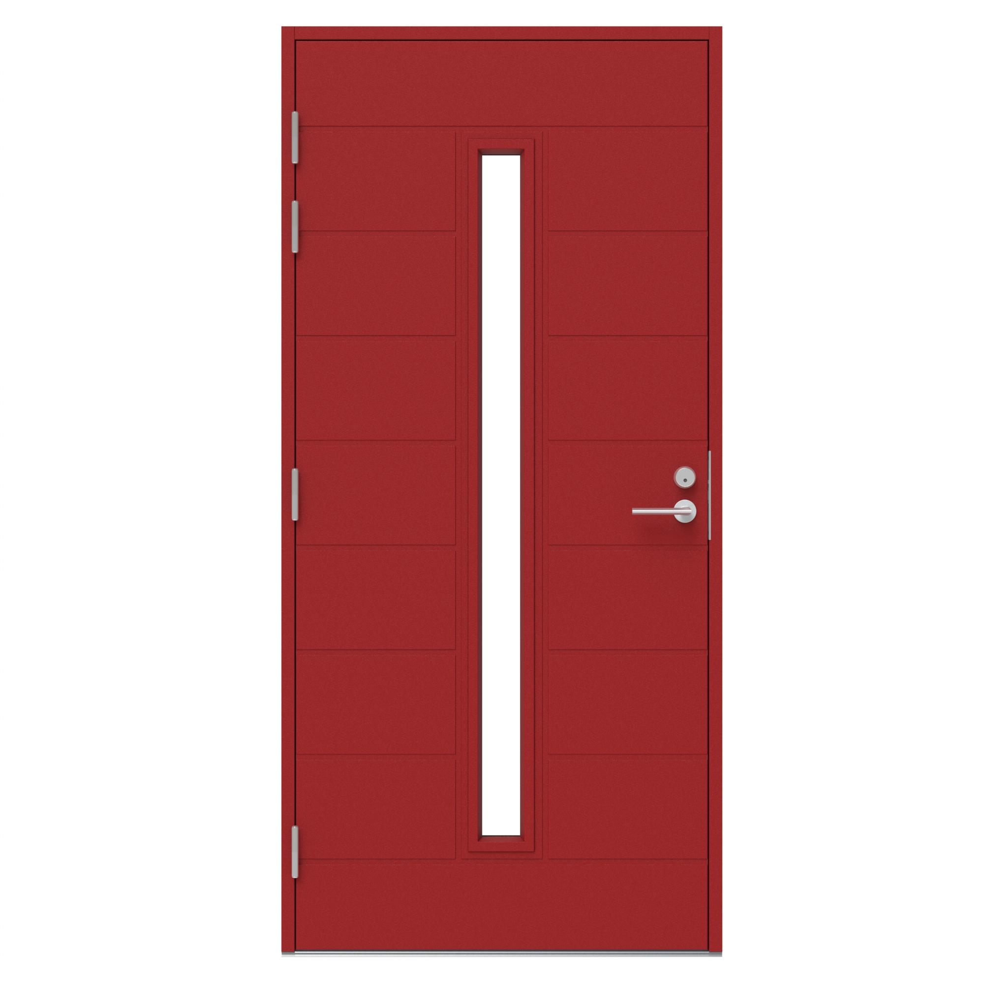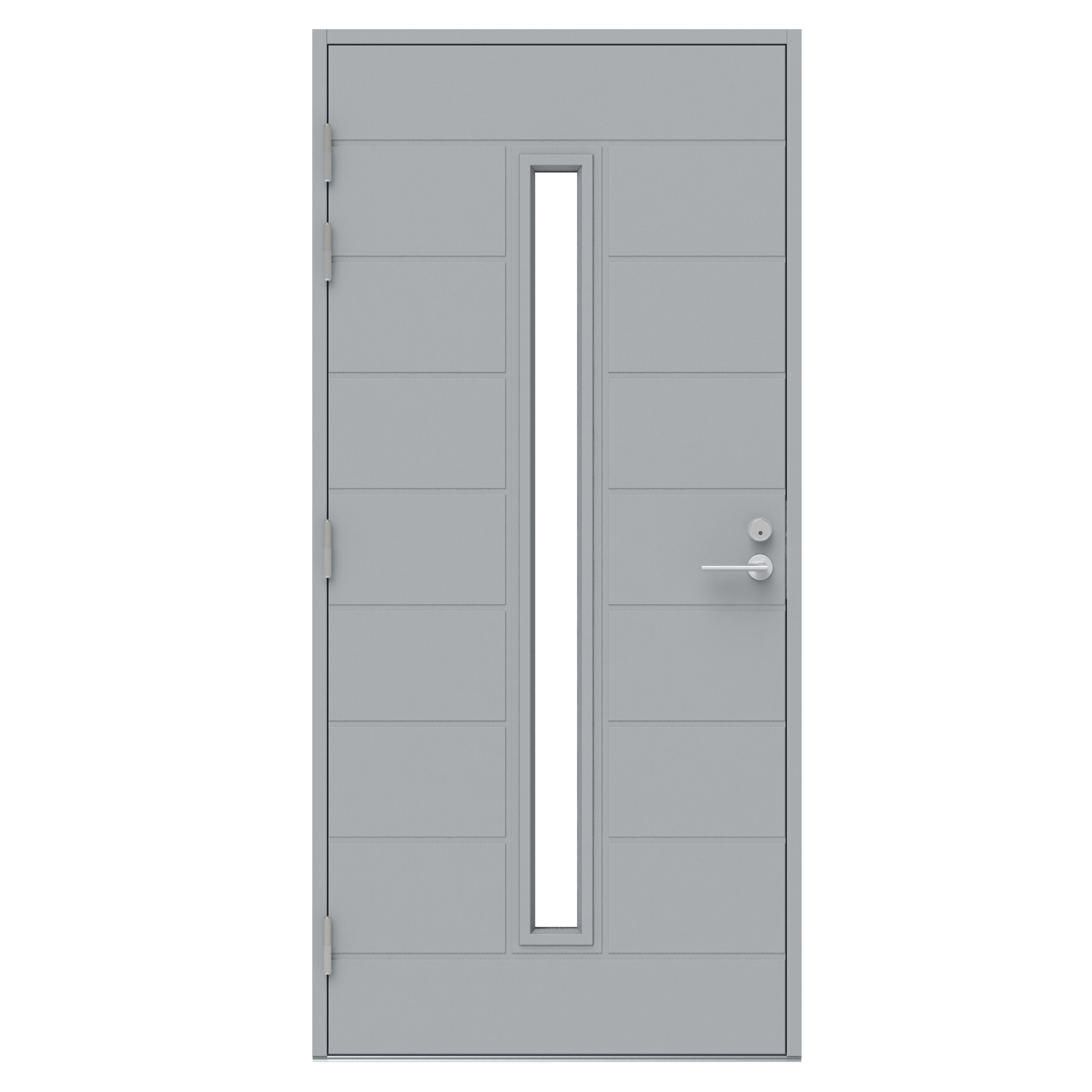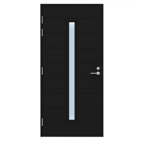 Vaakatasoon kulkevilla kuviourilla varustettu, selkeälinjainen ulko-ovi, jonka keskellä on korkea ja kapea lasiaukko. Koristelaseilla voit muokata oven olemusta ja säädellä sitä millaisen näkösuojan ovi tarjoaa. Ovi on saatavilla useissa eri väreissä ja oven rakenne on valittavissa Varma-rakenteella (U-arvo 0,83), energiatehokkaalla Termo-rakenteella (U-arvo 0,80), kevyemmällä Vieno-rakenteella (U-arvo 0,97), sekä yhdistelmäovirakenteella.