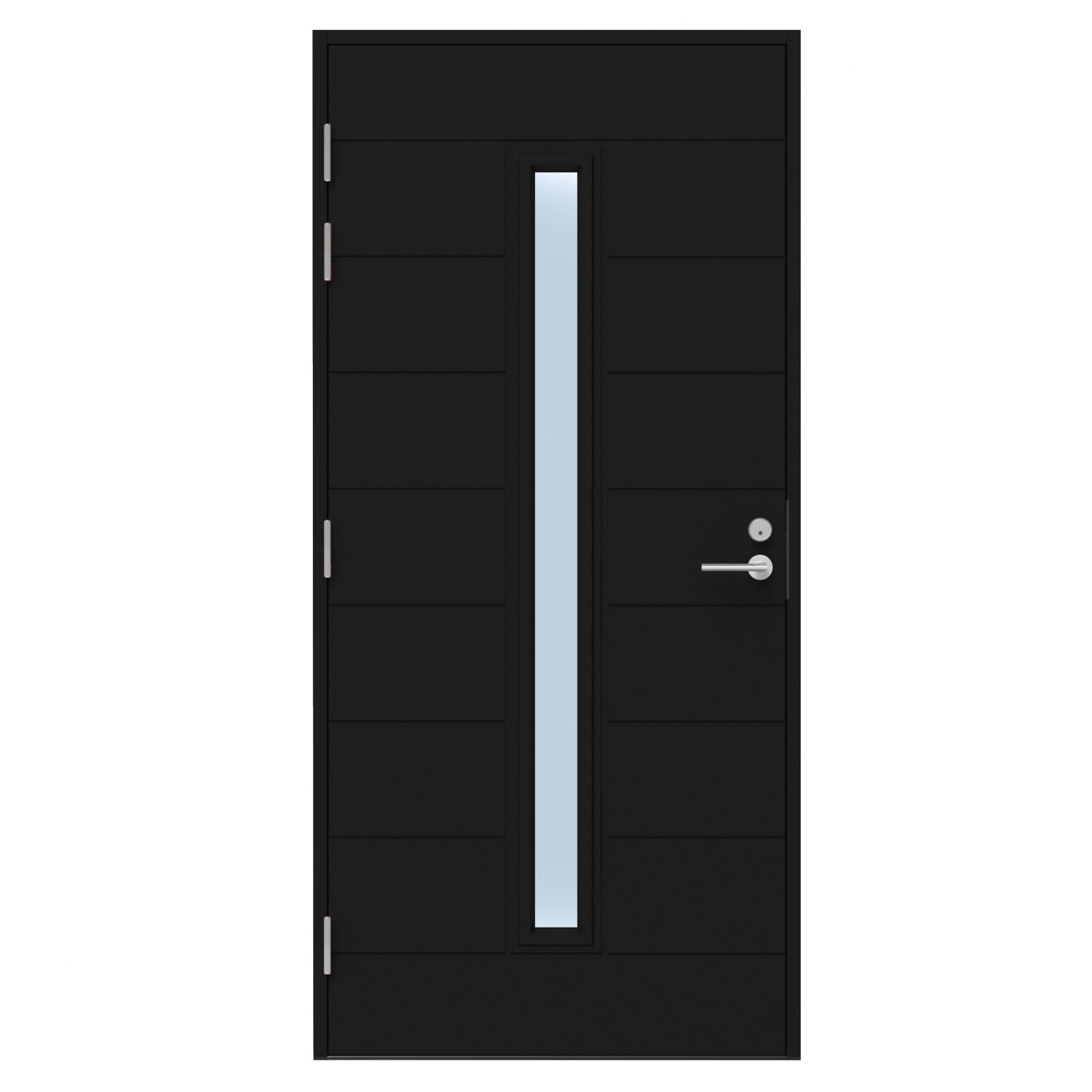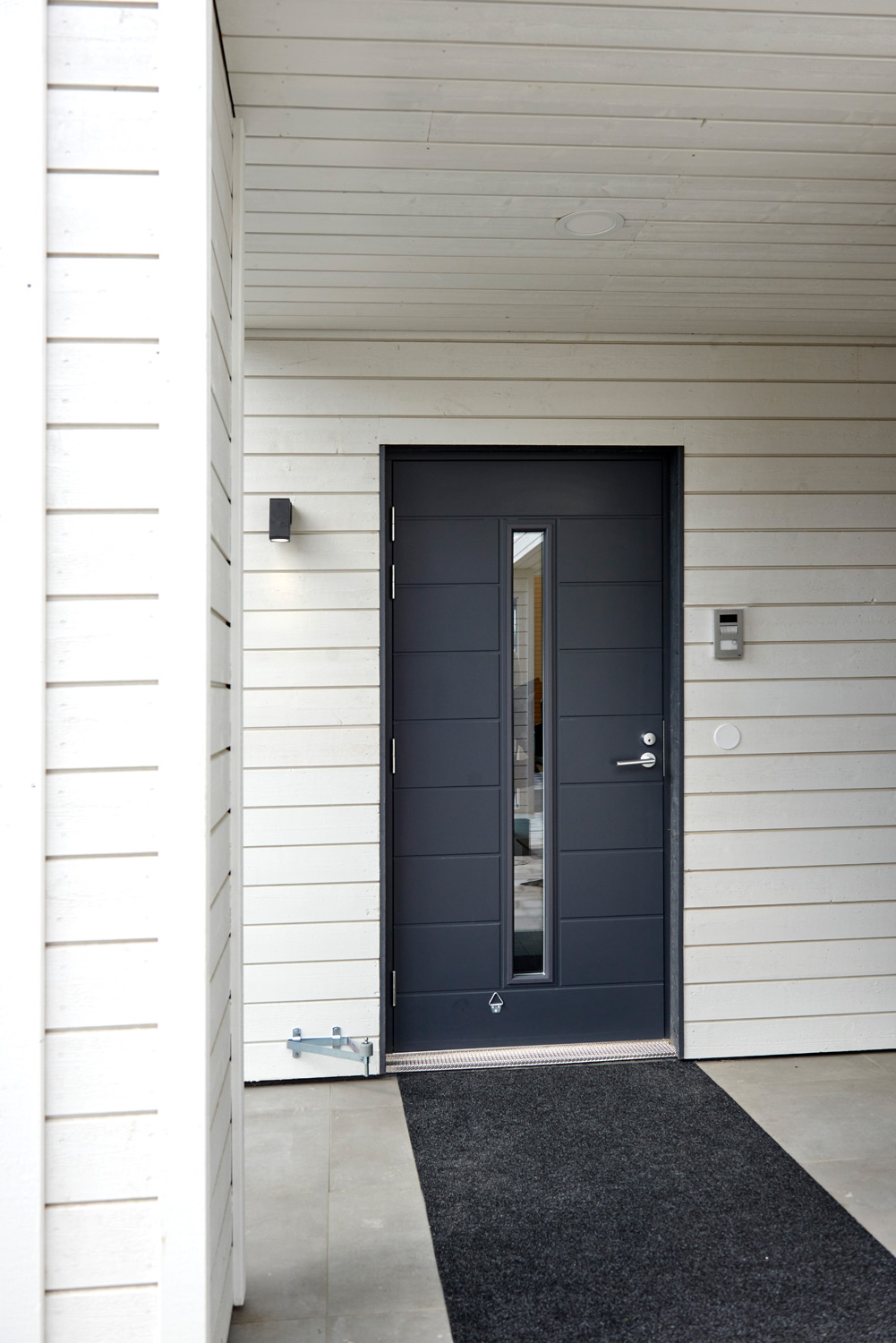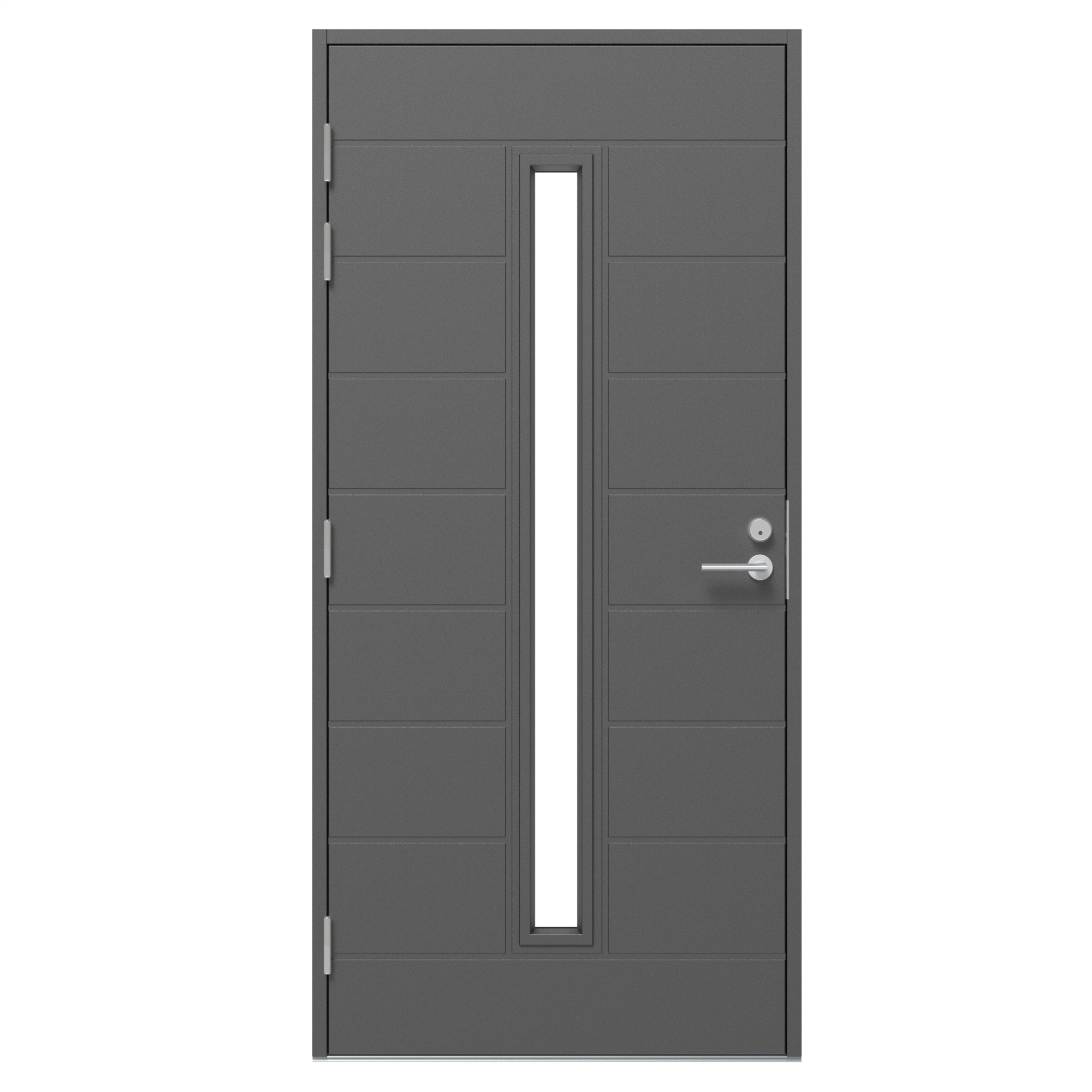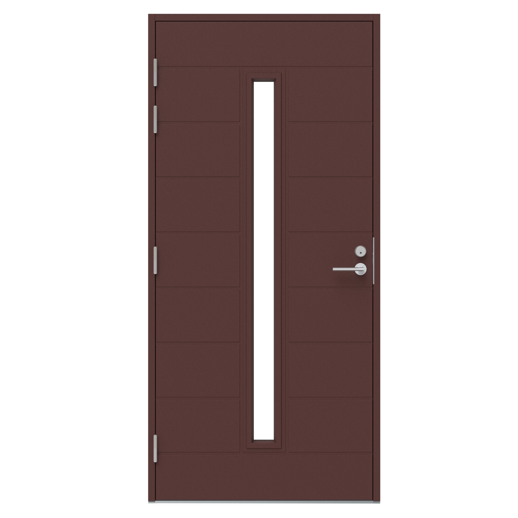 Vaakatasoon kulkevilla kuviourilla varustettu, selkeälinjainen ulko-ovi, jonka keskellä on korkea ja kapea lasiaukko. Koristelaseilla voit muokata oven olemusta ja säädellä sitä millaisen näkösuojan ovi tarjoaa. Ovi on saatavilla useissa eri väreissä ja oven rakenne on valittavissa Varma-rakenteella (U-arvo 0,83), energiatehokkaalla Termo-rakenteella (U-arvo 0,80), kevyemmällä Vieno-rakenteella (U-arvo 0,97), sekä yhdistelmäovirakenteella.