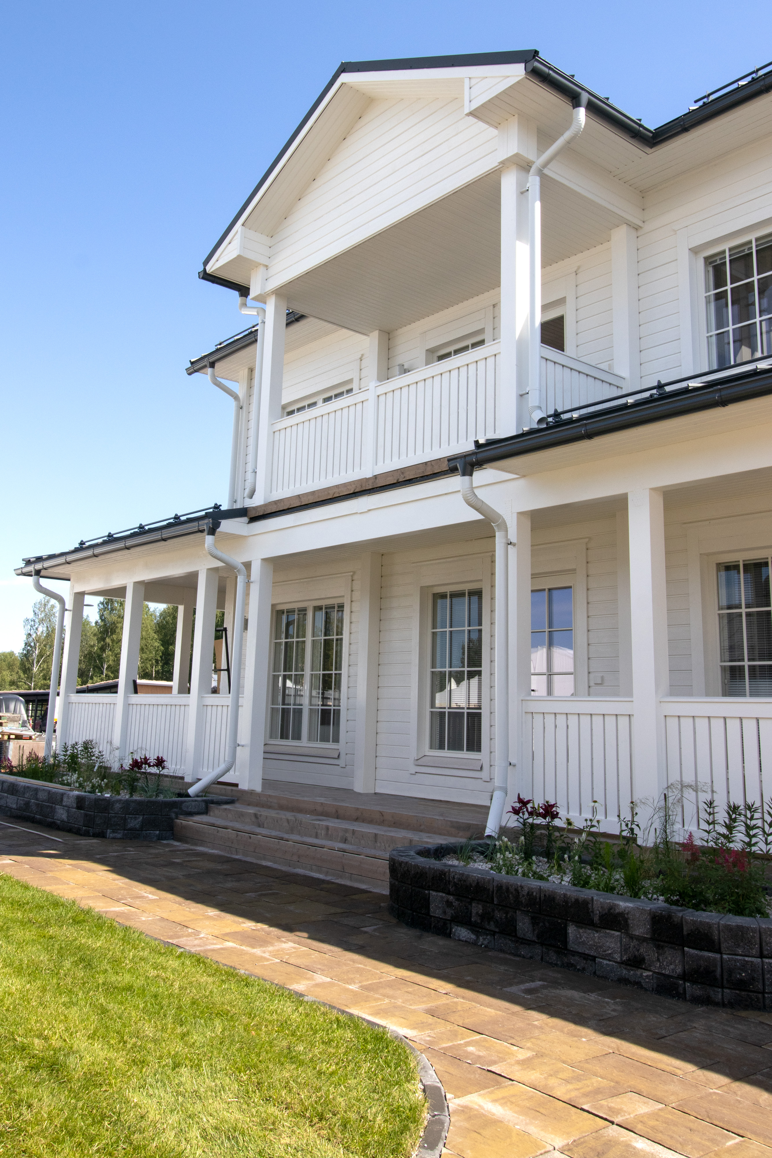 Näyttävää Idylliä kiertää katettu terassi, josta voi ihailla upeaa järvimaisemaa ja vaikka iltaisin auringonlaskua. Idyllistä löytyy Pihlan energiatehokkaat avattavat Varma -ikkunat. Talon Pihla-ikkunat on koristeltu idyllisillä ristikoilla, joilla talon koko ulkonäkö on saatu henkimään tiettyä tyylikästä tunnelmaa.