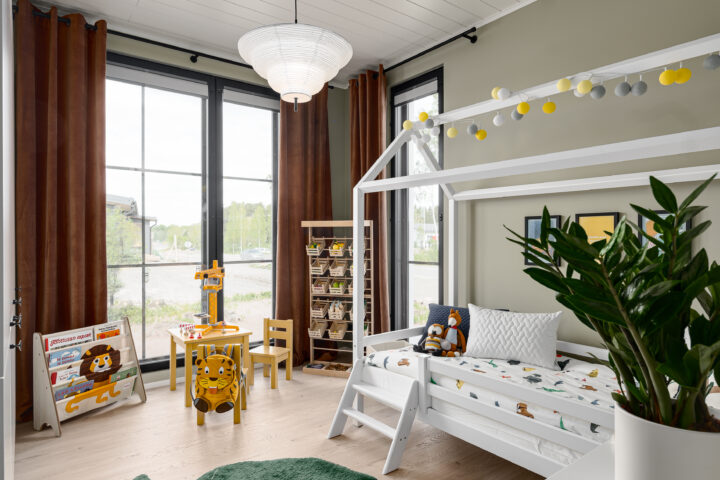 Kaksikerroksisessa Dekotalon upeassa puutalossa on suunniteltu jokainen neliö vastaamaan taloon muuttavan perheen tarpeita ja unelmia.