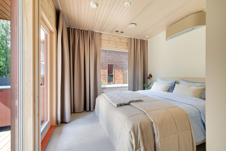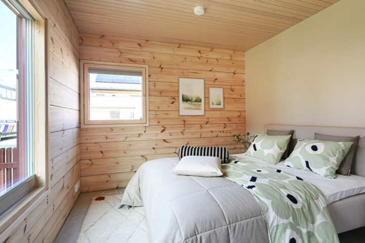 Honka Kömmelissä on hyödynnetty taitavasti erikokoisia Varma kiinteitä ikkunoita sekä Varma avattavia ikkunoita. Kuultokäsitellyt sisäpuitteet pitävät huolen, että ikkunat sulautuvat täydellisesti luonnollista puuta henkivään kotiin. Ikkunoiden alumiiniset ulkopuitteet ovat upean kirkkaan punaisen sävyiset ja täydentävät kauniisti punamultaista julkisivua.