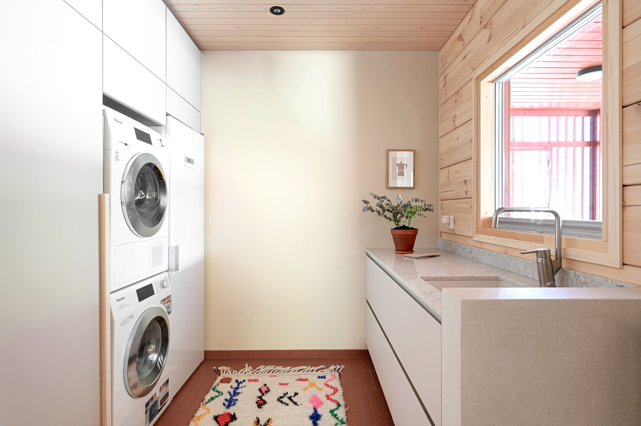 Julkisivultaan vähäeleinen hirsikoti on moderni tulkinta rannikkoseudun perinteisestä arkkitehtuurista ja klassisesta punamultaväristä. Sisälle kätkeytyy elämyksellinen koti, joka pysäyttää ajan ja tarjoaa unohtumattoman saunaelämyksen.