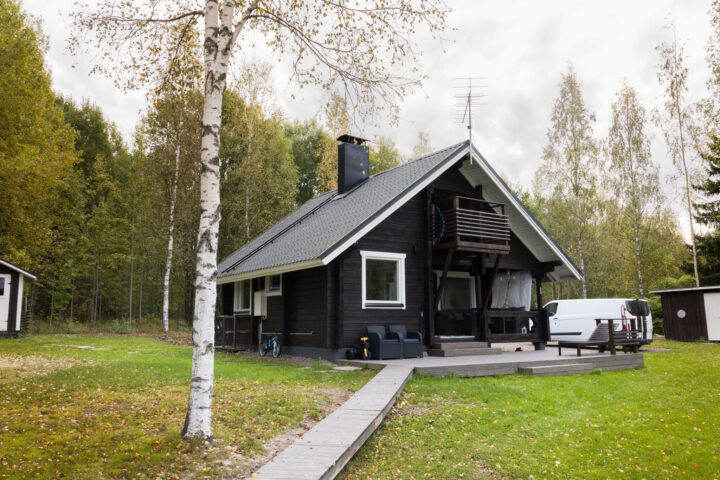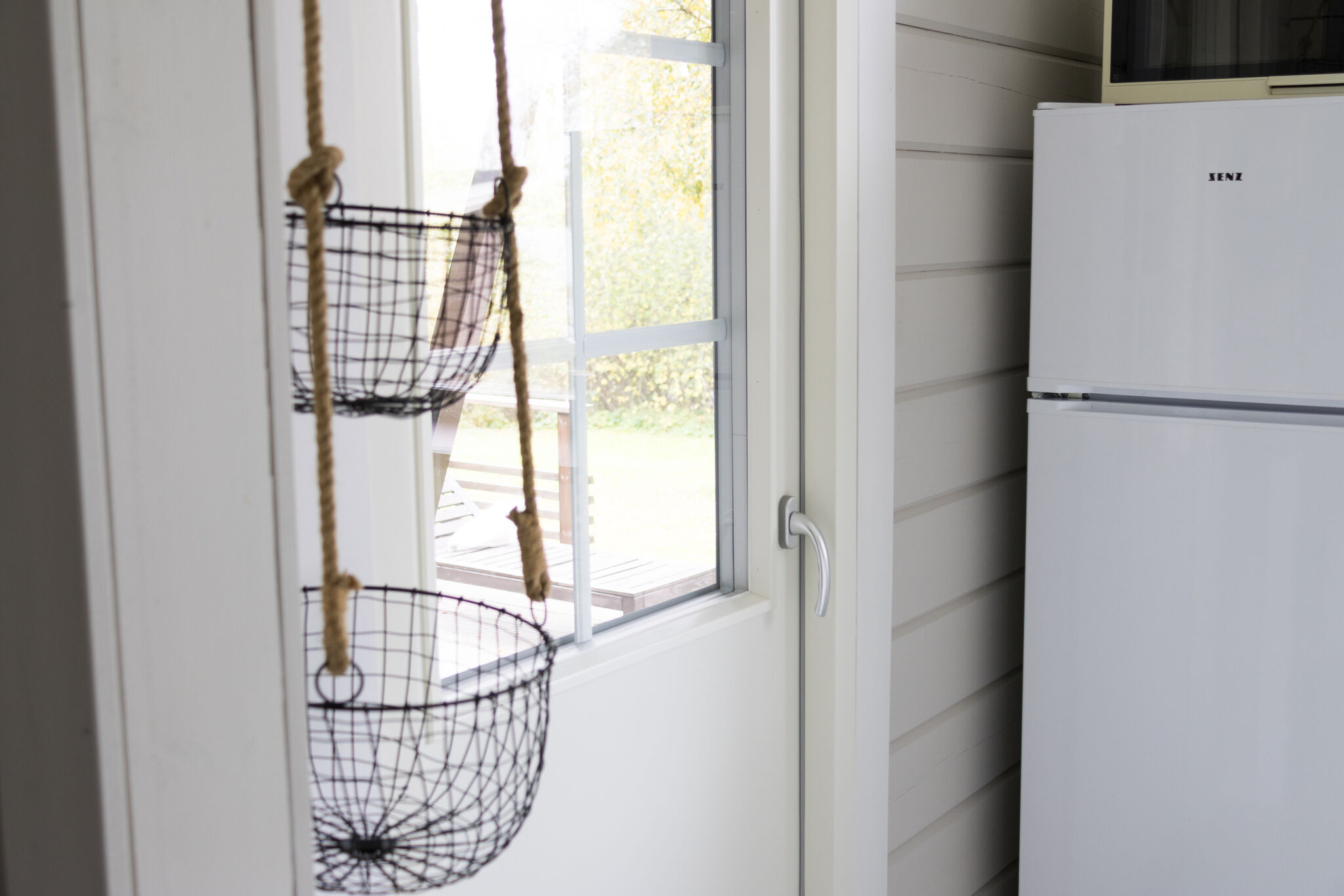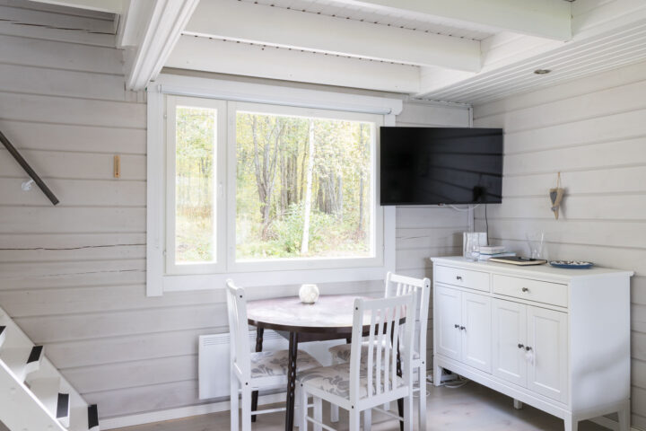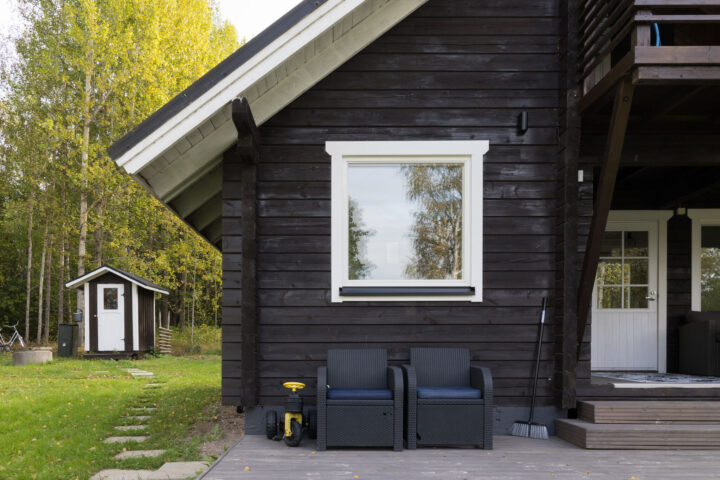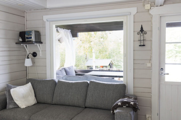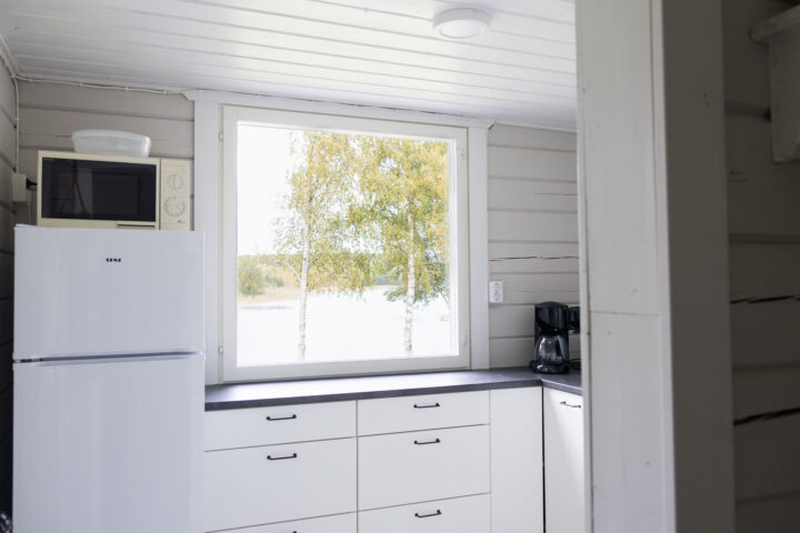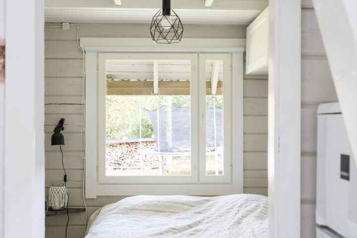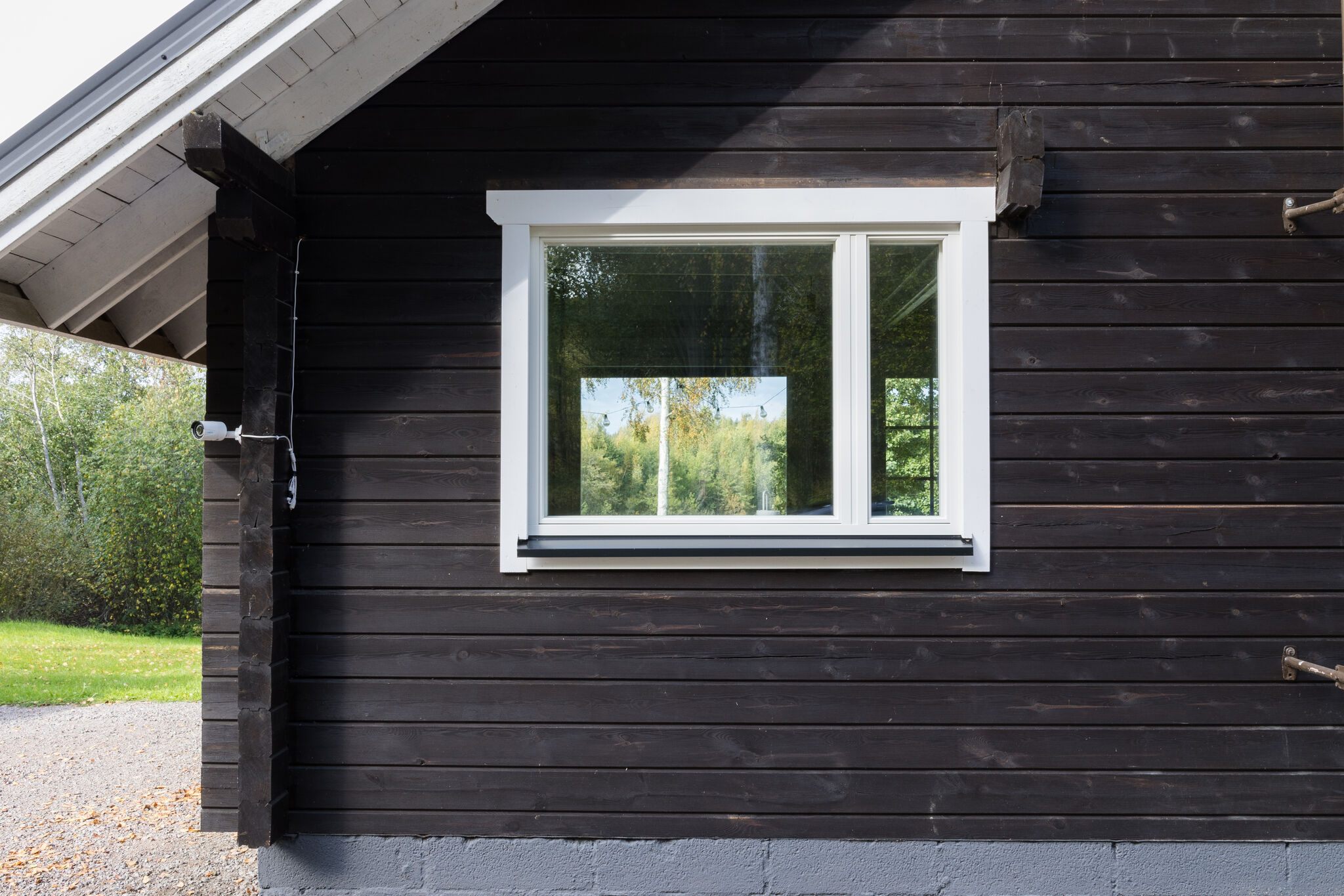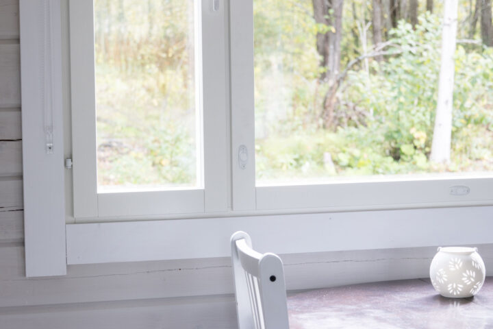 Yhdessä puolisonsa kanssa ikkunoiden asennuksen toteuttanut Vekkeli valitsi vanhojen ikkunoiden tilalle neljä vapaa-ajankohteisiin soveltuvaa valkoista avattavaa Mökki-ikkunaa, jotka istuvat hienosti mökin tummaan julkisivuun sekä sisätilojen vaaleisiin sävyihin.