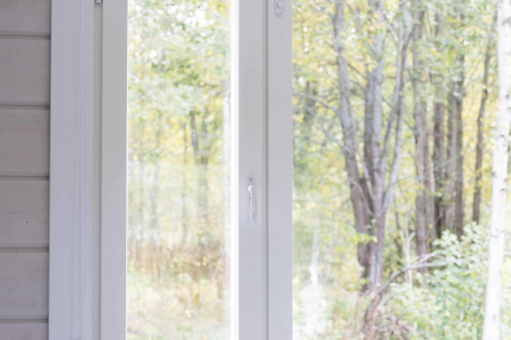 Kahden ikkunan yhteyteen valittiin Tuuletusikkunat, ja keittiöön saatiin entistä paremmat näkymät ja lisää valoa, kun sinne sijoitettu suurempi ikkuna asennettiin ilman tuuletusominaisuutta. Tuvan ikkuna varustettiin myös neljän millimetrin karkaistulla turvalasilla. Makuuhuoneen ilmanvaihto varmistettiin puolestaan helppokäyttöisellä KLIK S raitisilmaventtiilillä.
