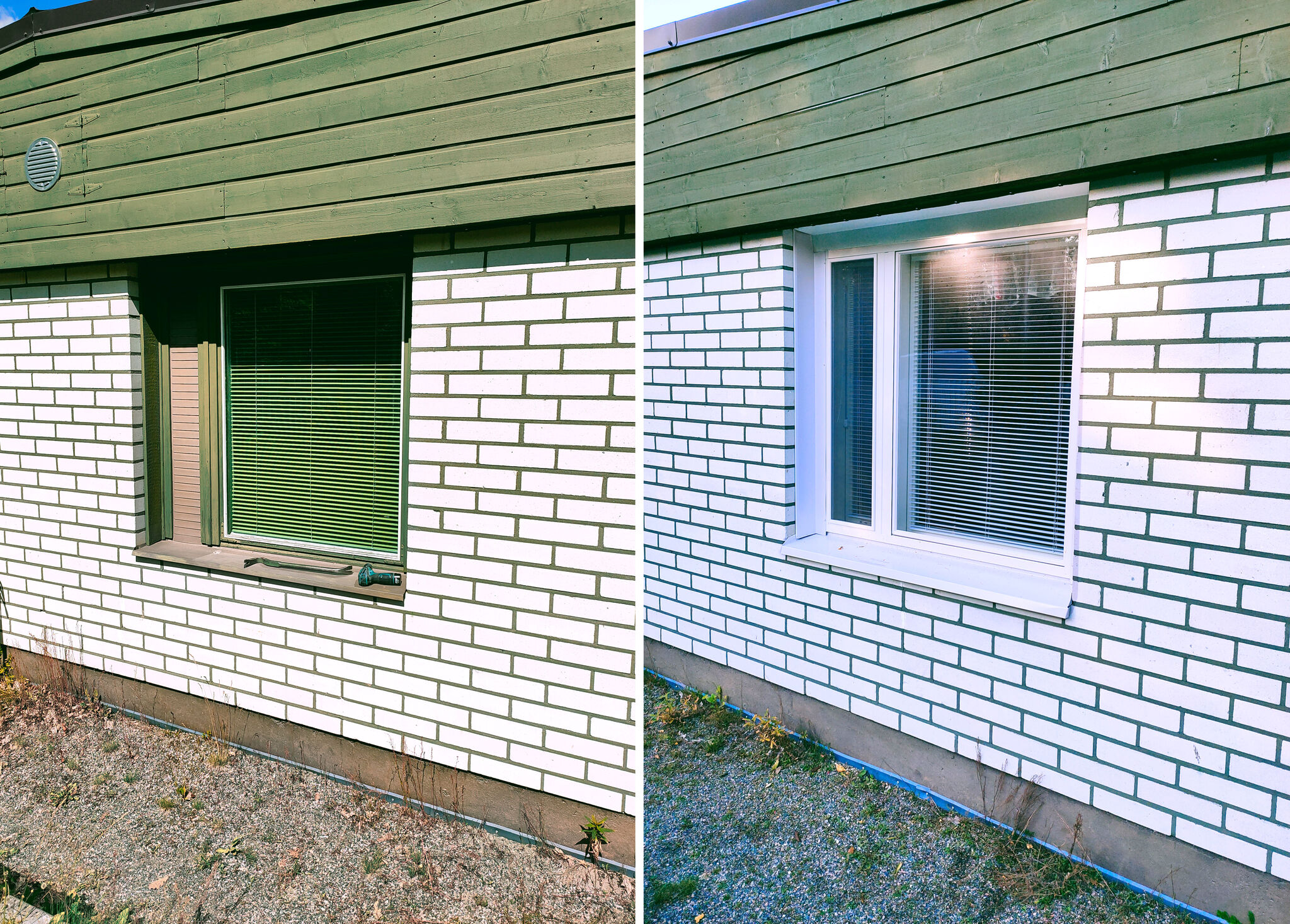 Ero entiseen on Jaakon mukaan suuri. Vanhat ikkunapuitteet olivat tummanvihreät ja myös sälekaihtimet olivat vihreät. Uudet valkoiset puitteet muuttavat siis huoneiden ilmettä dramaattisesti.