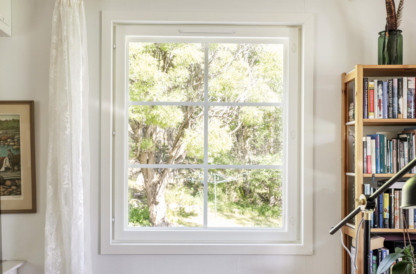 Remontin myötä taloon asennettiin kaikkiaan 12 avattavaa Pihla Varma -ikkunaa. Kylmän terassin avattava ikkuna valittiin Pihla Mökki -mallistosta. Uudet ikkunat ovat kauniin valkoiset, ja niitä koristaa sirot ristikot ja vuorilaudat.