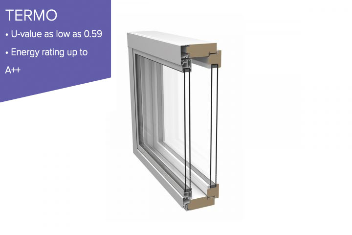 Eleganta Termo BLACK har en avancerad konstruktion. Fönstrets specialglasning är speciellt gjord för att passa svarta fönster, eftersom den skyddar karmar och konstruktioner från överhettning på grund av solen.