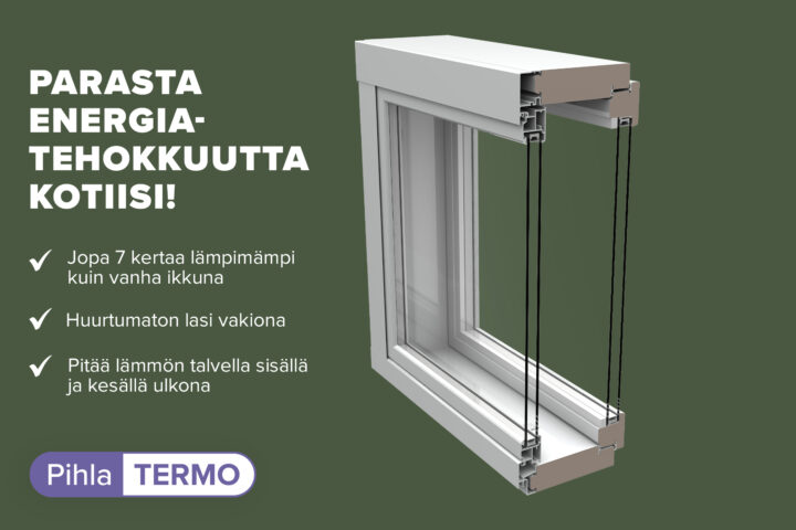 Kun ostat vähintään 6 Pihla-ikkunaa tai ovea, saat tilauksen kaikki tuotteet Termo -rakenteella Varma-rakenteen hinnalla. Etu koskee maksimissaan 30 avattavaa tai kiinteää ikkunaa tai ovea /remontti. Kampanja-edun saa kampanja-aikana tehtyyn omakotitalon ikkuna- ja oviremonttikauppaan Pihlan kotimyynnissä. Etu koskee uusia, kampanja-aikana tehtyjä tilauksia. Etuja ei voi yhdistää eikä niitä voi siirtää muihin tuotteisiin tai kampanjoihin. Etu koskee vain kuluttaja-asiakkaita. Kampanja ei koske uudisrakentajia, taloyhtiöitä, rautakauppoja, Pihla nettikauppaa ja talotehtaita.